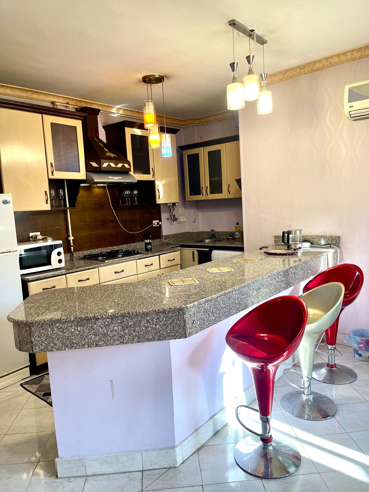 This spacious apartment is fully furnished and equipped with everything you need for a comfortable stay. Relax and watch your favorite movies and TV shows on the sound system with access to Netflix, beIN Sports, Shahid, Watch it, and Starzplay. Located in a central location, close to all the major attractions. Just a short walk for bus station , the shops, and the restaurants. Whether you're traveling for business or pleasure, this modern, stylish apartment is the perfect place to stay.