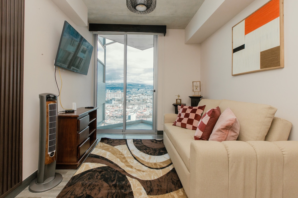 セクレットサバナの30階にあるこの真新しいモダンなアパートをいち早くお楽しみください!息をのむような景色、洗練されたキッチン、テレビ付きの居心地の良いリビングルーム、快適な寝室、モニター付きのワークエリア、そして建物内の駐車スペースをお楽しみください。出張やロマンチックな休暇に最適です。プール、ジム、屋上、コワーキングなどをご利用いただけます。サンホセのトップロケーションの1つで、快適さ、スタイル、そして他では味わえない景色をお楽しみください!