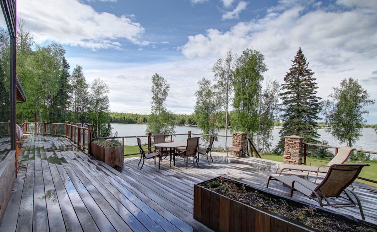 アラスカの湖畔にある豪華で楽しい宿泊先