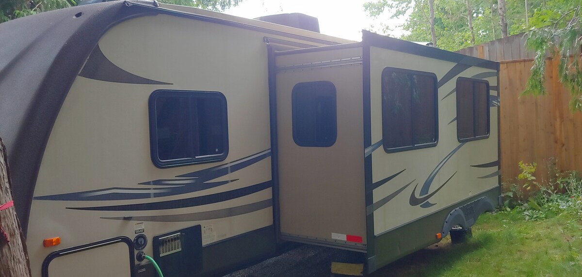 休暇にぴったりです! 明るく、暖かく、快適で、山に囲まれた新しい4シーズン5th wheelです。 このスペースはプライベートな場所にあり、フルキッチン、バー付きの屋外キッチン、シャワー付きのバスルーム、プロパン暖房、40インチテレビ、Netflix、Wi-Fi、電気暖炉、屋根付き駐車場、大きなデッキを備えています。 ドアからすぐの場所には、カスタムメイドの薪暖房式ジャグジーもあります。 ネルソンのダウンタウンまで車で5分、ホワイトウォータースキーリゾートまで20分です。