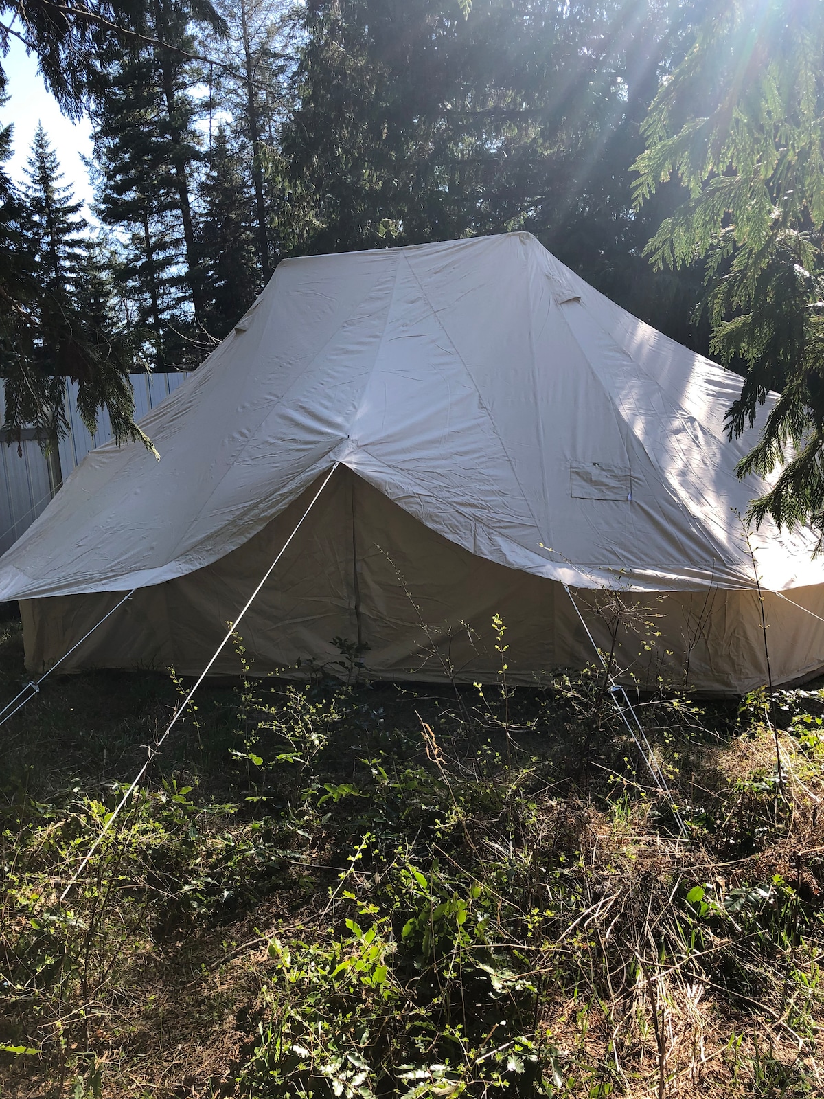 Birch Glamping Tentは、森の中にたたずむ306平方フィートのベルテントで、快適な自然体験を提供します。最大4名様まで宿泊可能(クイーンサイズベッド1台と布団1組)で、食事用テーブル、ピクニックテーブル付きのガゼボ、飲料水用の水差しとディスペンサー、洗面台、バーベキューグリル(プロパンガスは含まれません)、専用のファイヤーピットが備わっています。森林内のウォーキングトレイルのすぐそばに位置し、プライベートで穏やかで、元気を回復するための隠れ家として最適です。