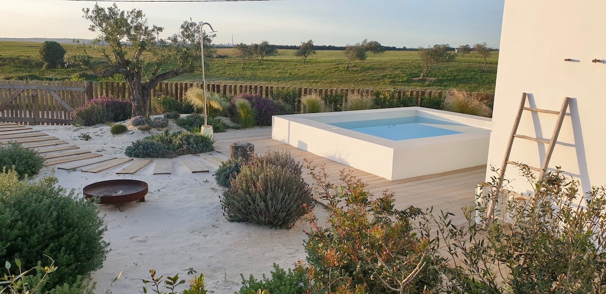 T1 com espaço privativo de jardim e piscina aquecida, a poucos minutos da Praia da Samouqueira e da Vila de Porto Covo. Na Cabana foi colocada uma banheira no quarto, junto à ampla janela, de modo a possibilitar a observação dos extensos campos, por onde pastam vacas e ovelhas, e do mar no horizonte. Os tons azuis e amarelados refletem-se no mar, nas dunas e prados, o espectáculo é sublime, sobretudo na hora do pôr-do-sol. Venha viver devagar!