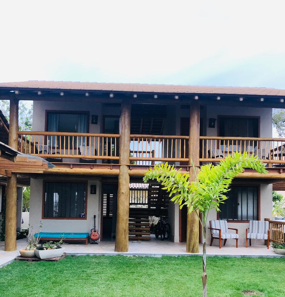 Pousada com 3 suÃtes independentes.NÃO ACEITAMOS PETS. CondomÃnio Portal dos Guaratiba em Prado . Varanda com rede e mesa para seu café da manhã.SuÃtes com ventiladores e TV. Pertinho da praia.Parquinho, chuveiro e mesas com sombreiros. Pizzarias, lanchonete, distribuidora de bebidas, padaria e comércios. 24 hrs com vigias e câmeras. Quer curtir a vida noturna?O centro de Prado está a 10 km e o famoso Beco das garrafas e feira de alimentos. Próximo as praias Cumuruxatiba e Corumbau.
