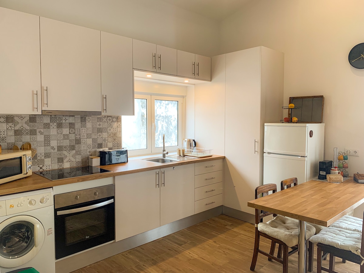 典型的な家屋を完全に改装した隠れ家的な宿泊施設です。モンティジョの町の中心部にあり、リスボンから車で20分です。カントリースタイルとインダストリアルスタイルを完璧に調和させたユニークなデザインが、この空間を温かく快適なものにしています。設備が整ったこの家には、寝室2室、バスルーム2室、オープンプランのキッチン、リビングルーム、共用庭園の屋外スペースがあります。 ご要望に応じてベビーベッドをご用意しております。