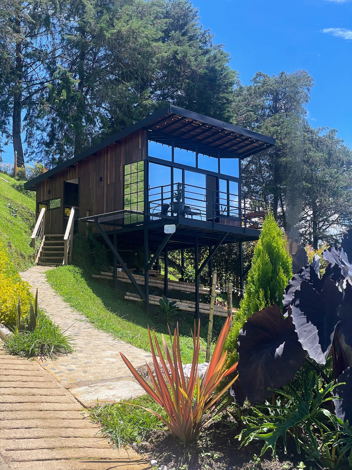 FORESTA is a modern cabin created with love for you to have an unforgettable stay in the middle of nature, with total comfort. Enjoy the privileged views from the deck, chill out in the jacuzzi, watch the dozens of birds that visit us or have a chat by the fireplace in the living room. FORESTA is a great launchpad to explore Guatape, climb the rock and do kayaking, jet-ski, wakeboard, sailing, paraglading, horseback riding, hiking, getting a helicopter ride or having an ATV tour. You choose!
