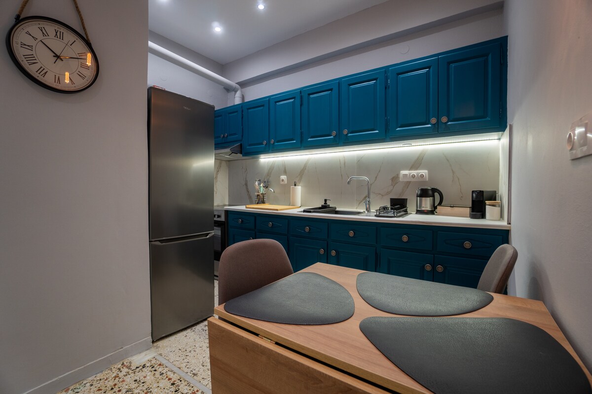 The apartment is 65 square meters, and has its own entrance even though it belongs to a quiet residential complex. It has a private parking right at the entrance. It is only 4 kilometers from the city of Corfu. The city bus stop is right below the apartment. The Airport is located at a distance of 3 kilometers, the Intercity Bus Station is also at 3 kilometers, and the Port is at a distance of 5 kilometers. The General Hospital of Corfu is only 6 kilometers away.