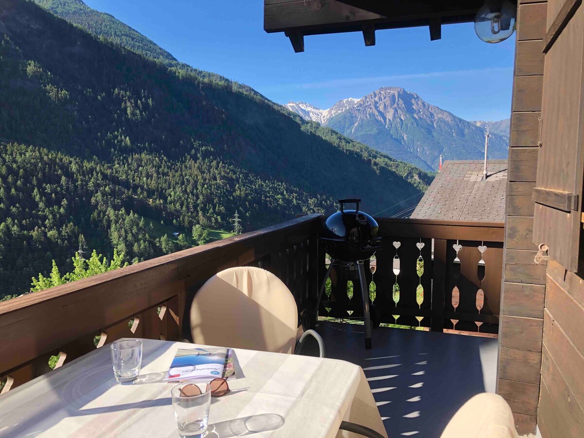 あなたは安らぎと休息をお探しですか? 山、自然、文化がお好きですか? 私たちの家でくつろぎのひとときをお過ごしください! 私たちはあなたを温かく迎え、喜んでおもてなしさせていただきます。 ホストファミリー アントワネット、マルクス、ジョバンニ アパートは、海抜約900メートルのビッシュ村の「エブネ」という集落にある一戸建ての家の中にあります。 ビッシュは、オーバーヴァレーにある小さく居心地の良い村です。アレッチ地域(ユネスコ世界自然遺産)の麓、ナータース/ブリッグから南に5キロ、東に位置しています。 南に向かうと、シンプロン峠はイタリアのドモドッソラに直接つながっています。 1階には、アパートの隣にある広い庭園(ダブルベッドとシングルベッド、ソファ、読書用椅子、WELAN-TV、設備の整ったキッチン、シャワー付きバスルーム)があり、ヴァレーの山々の美しい景色を眺めることができます。庭の家具やデッキチェアが、太陽と安らぎを浴びながら、屋外でのんびりとした時間を過ごすことをお勧めします。 公共交通機関を利用することで、車なしで到着することができます。徒歩でお店、郵便局、銀行まで約15分、バスで5分です。 時間を楽しむ方法は無限です。 多様なスポーツ施設(ハイキング、クライミング、サイクリング、スキー、水泳など)文化施設(博物館、劇場、季節に応じた文化イベント)や自然(ユネスコ世界遺産アレッチ、ビントヴァル自然公園など)がすぐそこにあります。 私たち自身も旅行が大好きで、旅慣れた家族として、ゲストの皆様との交流を楽しみにしております。私たちはドイツ語、英語、フランス語、イタリア語を話します。 ご希望であれば、地元の自然派の食材を使った豊かな朝食をご用意いたします。 必要に応じて、登山やハイキングのガイドを手配し、特別なご要望にお応えできるよう努めます。 最も重要なのは、お客様が快適に過ごし、リラックスしていただくことです!