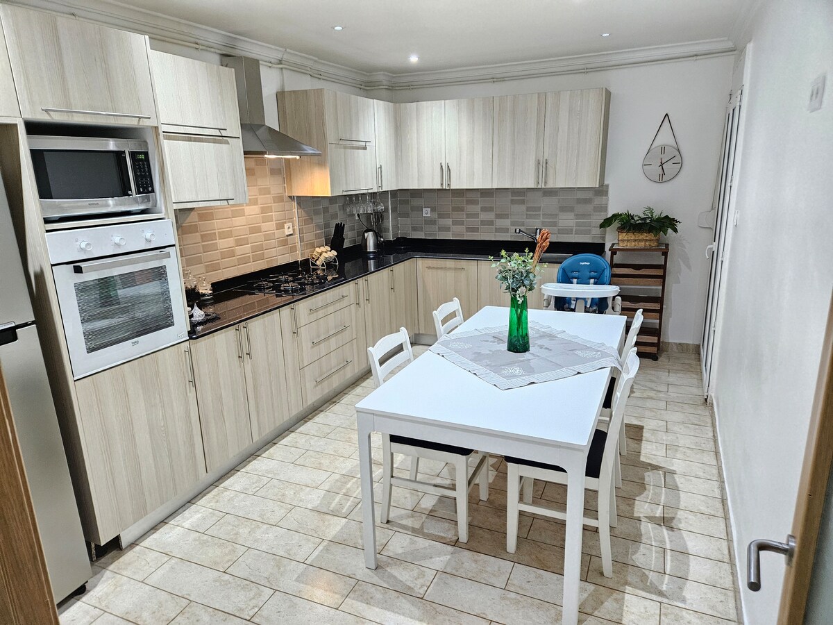 私たちは、バルコニーを改装したこの105m²のT4タイプの豪華なアパートを提供しています。 快適な滞在のためのあらゆるモダンな設備がそろっています。家族全員が満足するためのものがすべて揃っています。写真でご覧いただけるように、すべてが新しく、上品に整えられています。
