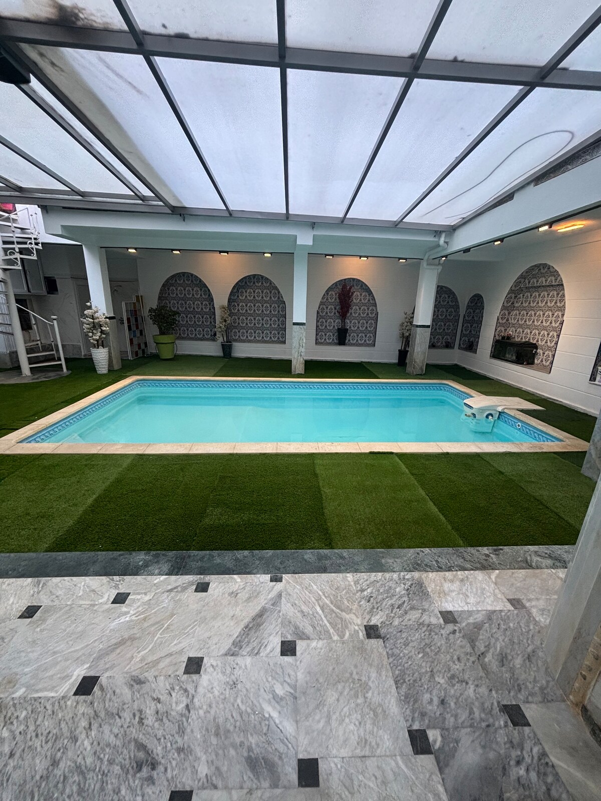 プライベートプールとハマムを備えた高級ヴィラで忘れられないひとときをお過ごしください。スーパーマーケットとモスクのある近代的で安全な住宅地に位置しています。空港からわずか20分、ビーチから17 km、バブ・エズアールの大型ショッピングセンターから25分、アルジェ中心部から35分の場所にあります。首都の主要な観光スポットを楽しみながら、穏やかな時間を過ごすことができます。温水プールについては、続きをお読みください!
