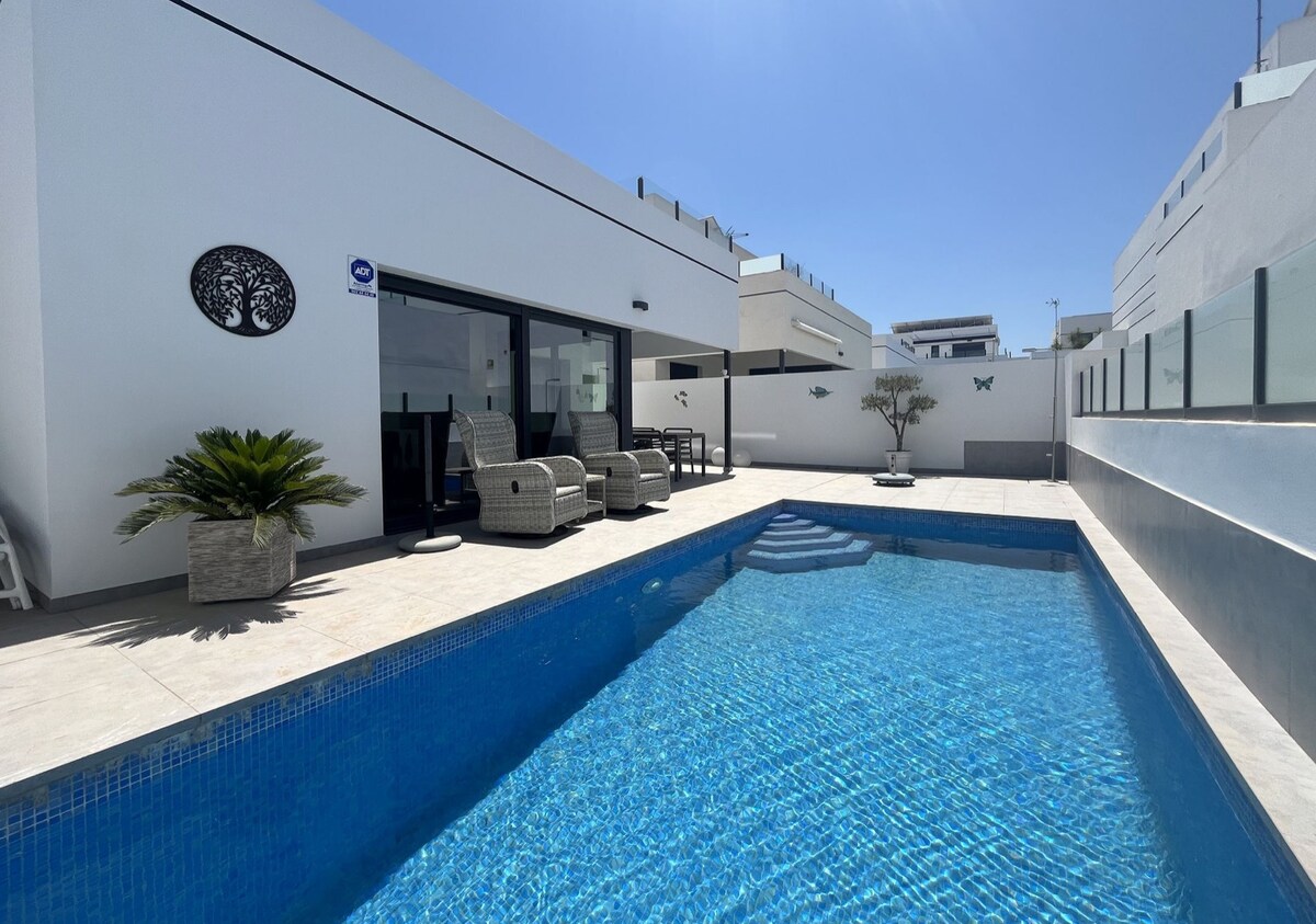 Enjoy a relaxing stay in this modern and comfortable holiday home with sea views from the private rooftop terrace. Located in a quiet, gated community, the house offers space for up to 4 guests, two well-maintained community pools, air conditioning and fast WiFi – ideal for couples or small families looking for a peaceful Costa Blanca getaway.