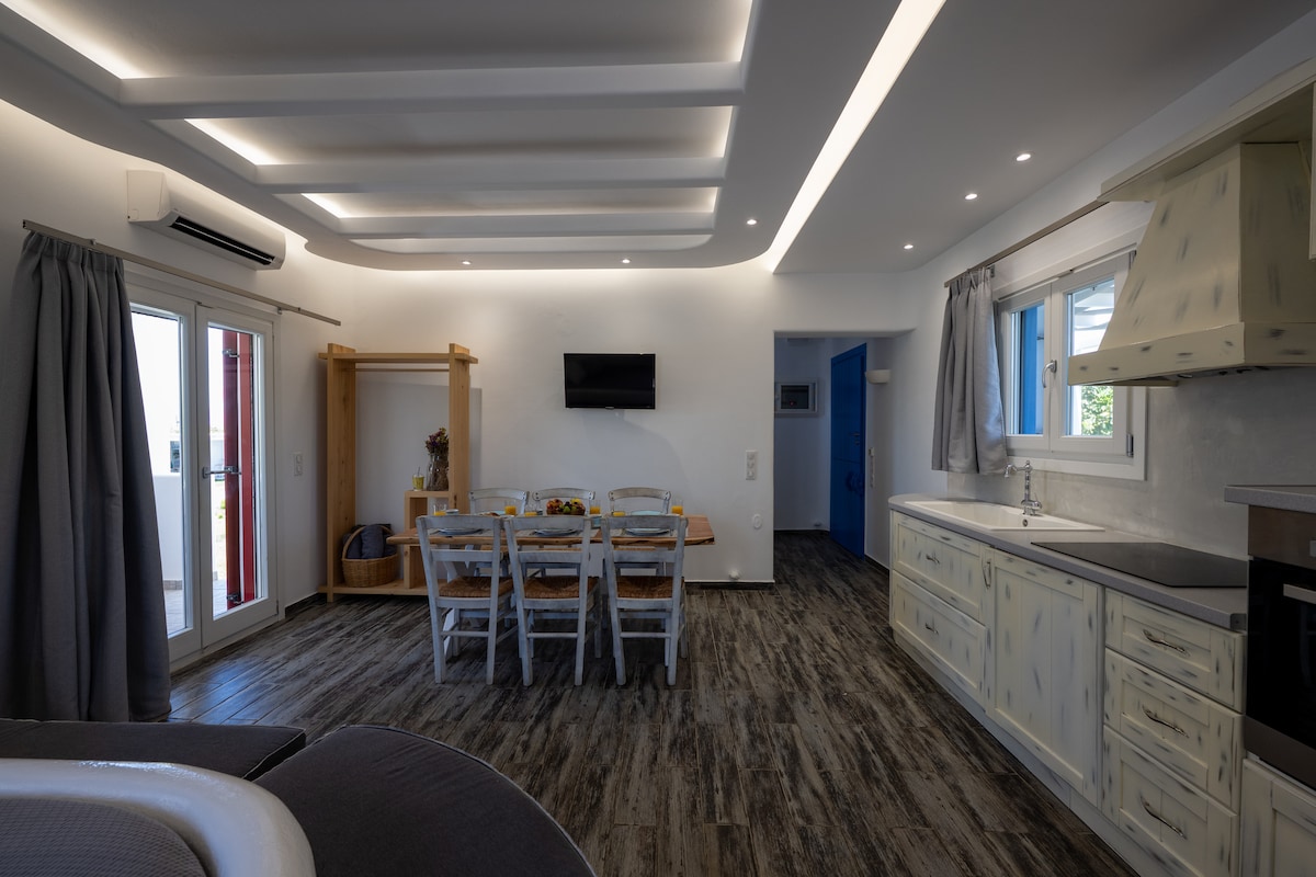 パリキアの中心部に位置する伝統的なキクラデス様式の家では、すべて徒歩で行けるようになっており、モダンな快適さとギリシャの伝統を尊重した美しい独立したアパートを提供しています。 全面改装済みのエアコン付きのLIADAアパートは、4名様にご利用いただけるきれいな装飾になっています。 大きなベッドを備えた寝室、2名様用の快適なコンバーチブルソファを備えたリビングルーム、設備の整ったキッチン、キクラデス風シャワー付きバスルームで構成されています。
