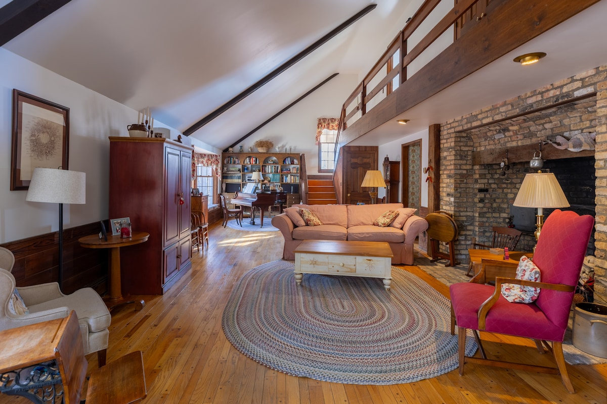 Very unique apartment downtown Otsego, walkable to shops, restaurants and bars. Recently renovated, this space sits above the vault of a 1920's era bank with a rustic/industrial feel. Featuring rustic ceramic tile in the kitchen, bathroom and work area, bamboo floors in the living/bedroom, granite counters, tile backsplash, copper sinks, and tile shower with glass door. 65" smart flatscreen tv, electric fireplace, WIFI, Central Air/Heat, and built in butcher block desk.