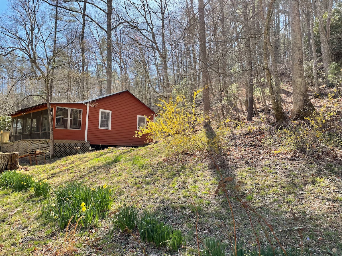 古いタバコ納屋2棟(暖炉付き)を改装したこの宿泊施設は、過去と現在をつなぐユニークな体験を提供します。 キャビンは自然の美しさに囲まれており、ビッグリードアイランド川は玄関先からわずか数フィートのところを流れています。 32エーカーの敷地にあるこのキャビンには、ロッキングチェアを備えた大きなポーチがあり、川と山の景色を楽しむのに最適です。 新しく追加されたのは屋外シャワーです! インターネットはご利用いただけません。テレビはDVD/CDのみ再生可能で、携帯電話の電波も限られています。本当に電源を切ってリラックスしてください。