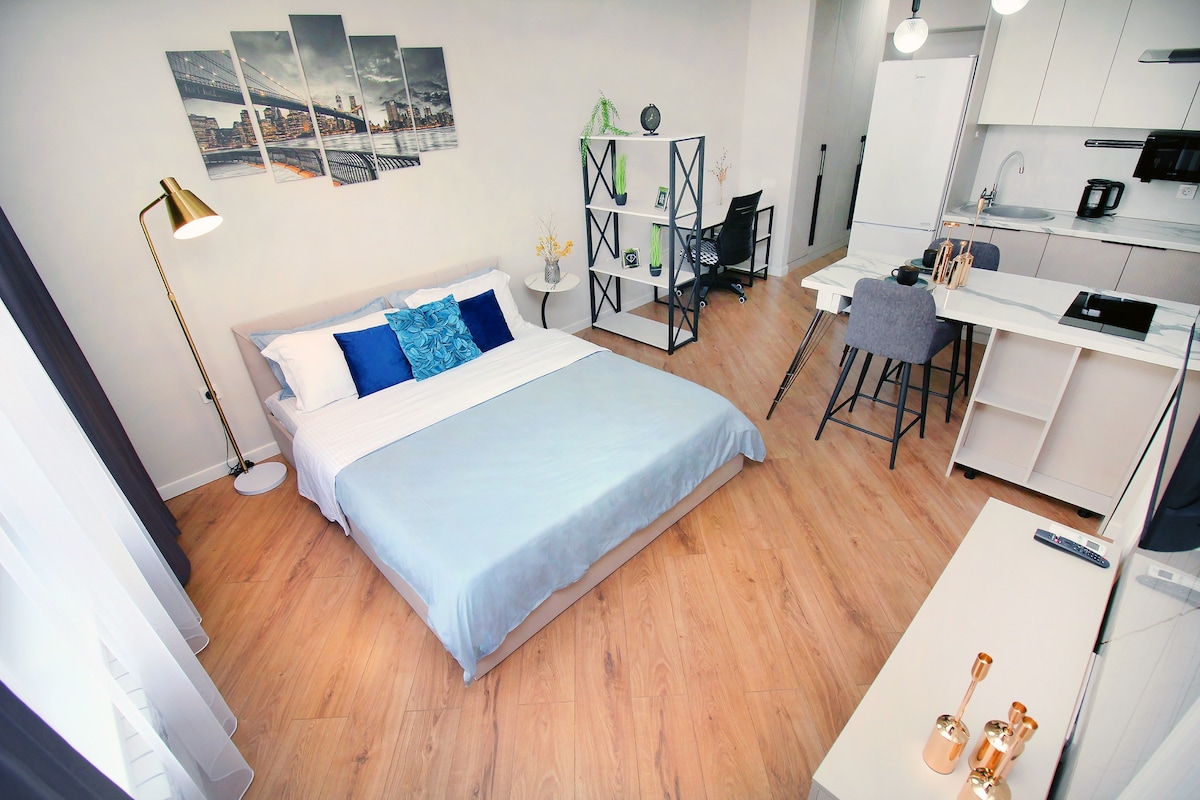 ゲストの皆様、アルマトイの有名な「ゴールデンスクエア」にあるスタイリッシュで快適なアパートにご招待します。リクソスホテルからわずか数歩です。 高級感あふれるデザイン、便利なロケーション、発達したインフラをお楽しみください。徒歩圏内にレストラン、バー、カフェ、スーパーマーケット、文化的なアトラクション、ジムなど、必要なものはすべて揃っています。快適なリラクゼーションとアクティブなレジャーにぴったりの場所です!