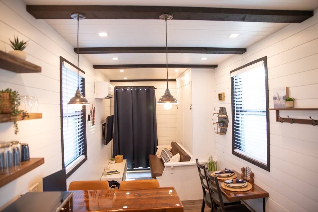 この素晴らしいコンテナハウスにはがっかりさせません! 寝室1室とインフレータブルフロアマットレス1台で、最大4名様までご宿泊いただけます。 超快適なTuft and Needleのクイーンマットレスを備えています。 キッチンには花崗岩のカウンタートップが備わっています。 屋上デッキは、星空を眺めたり、モーニングコーヒーを楽しむのに最適です。 フルサイズのカスタムタイルのシャワーと広々としたバスルームを誇り、この美しい家を完成させます。 アルパインのすぐ外れにあり、ダウンタウンから2分です。