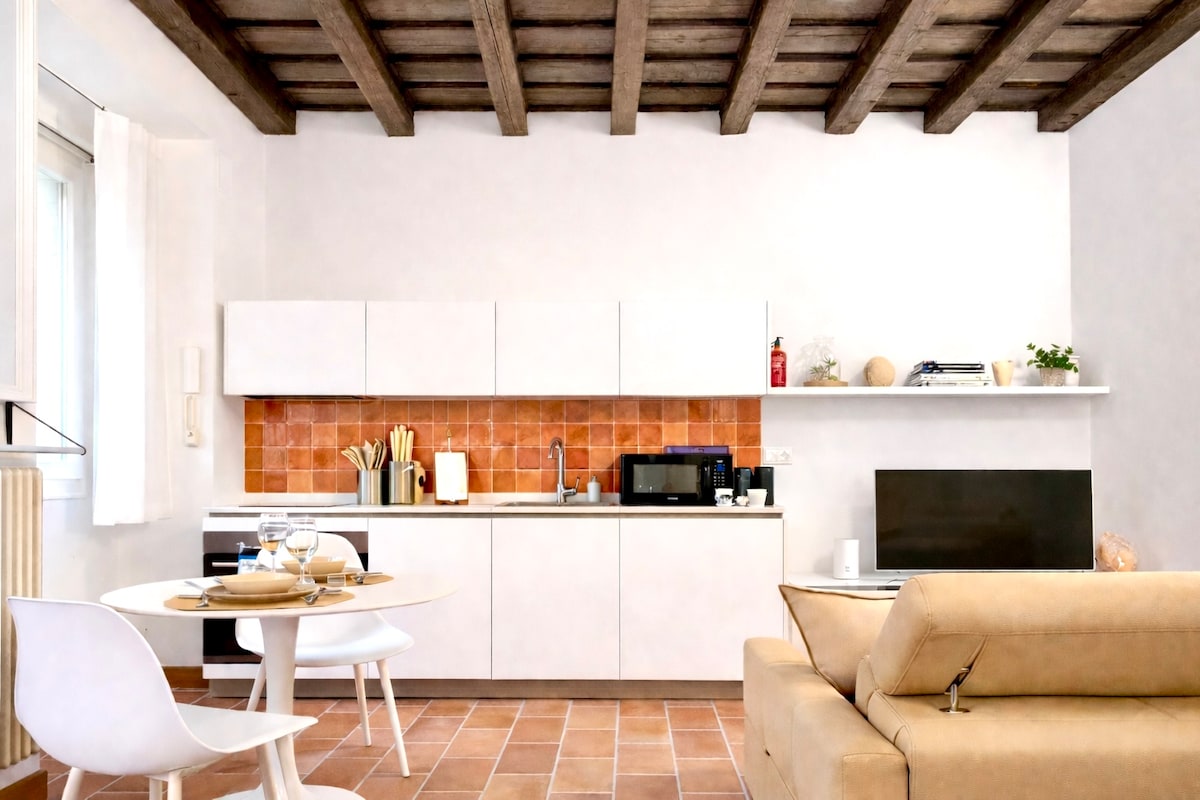 フィレンツェの中心部、オステリア・デル・グアント通りにある明るくスタイリッシュなアパートに滞在しましょう。歴史的建造物の2階にあり(エレベーターなし)、ダブルベッドルーム2室、バスルーム2室、居心地の良いリビングルーム、設備の整ったキッチンがあります。中心部にある快適で広々とした場所で、カップル、友人、または家族連れに最適です。