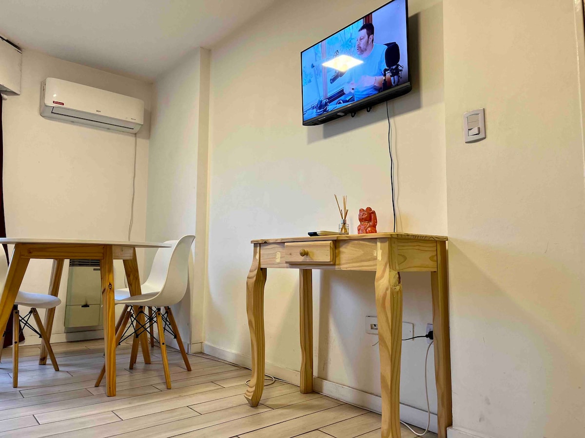Depto de 1 dormitorio sin vecinos tiene terraza y cochera propia con sillones, mesa y asador. Cuenta con living/oficina/consultorio, cocina comedor equipada, baño completo y entrada independiente. Decorado con estilo y mucha luz natural. WiFi, TV Smart y todos los servicios. Ubicado en zona tranquila y segura, cerca de todo en pleno gral Paz.