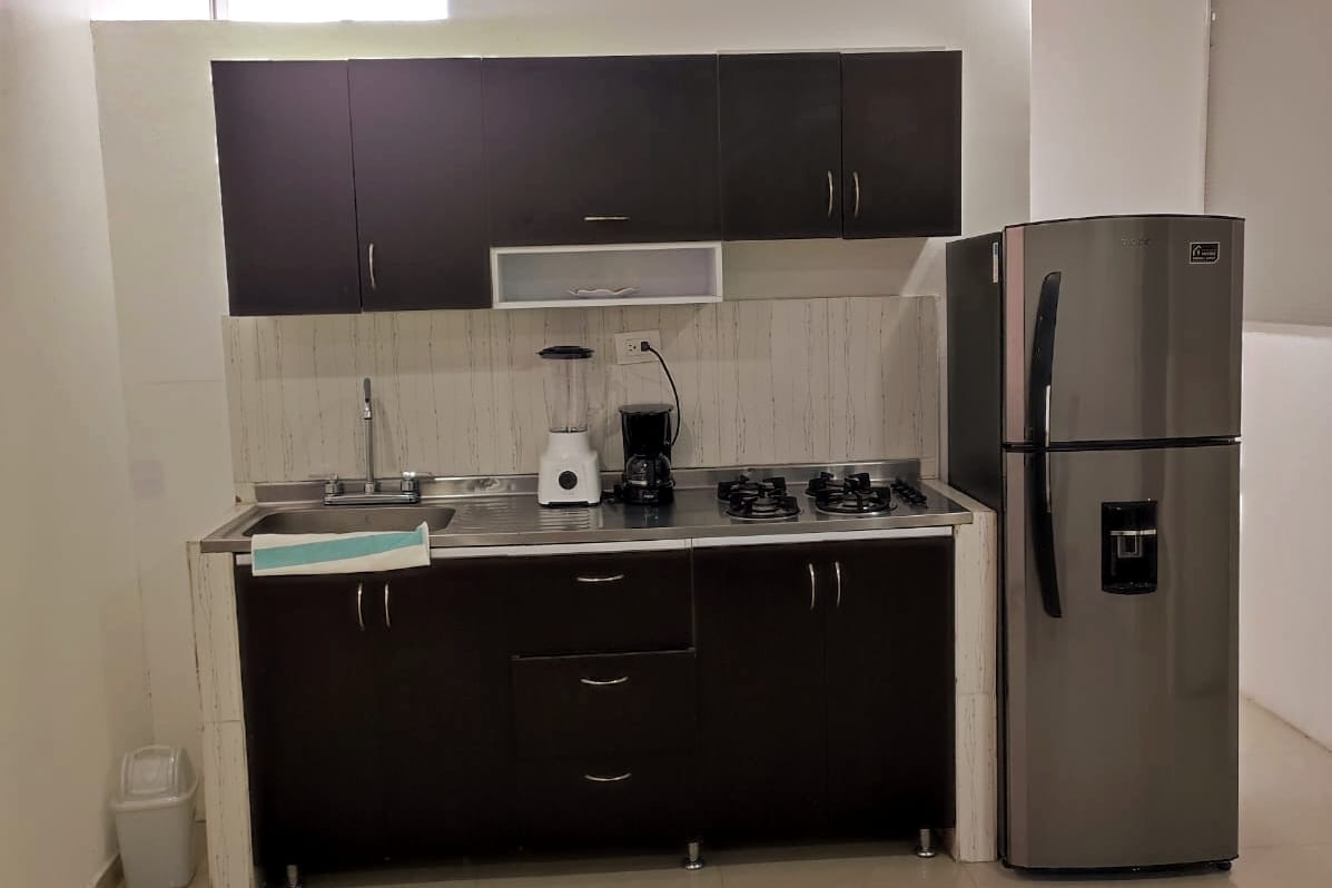 Ideal apartamento en el centro de la ciudad, cerca de zonas comerciales, restaurantes y supermercados. Excelente alternativa para viajes de negocios, familiares y grupos de amigos que quieren alojarse en un lugar moderno y espacioso. El apartamento se encuentra en un tercer piso y cuenta con dos habitaciones y 1 baño. Podrás preparar tus comidas en la cocina que cuenta con los utensilios básicos, tiene televisor Smart Tv y wifi gratis. Hay parqueadero cerca 24 horas.