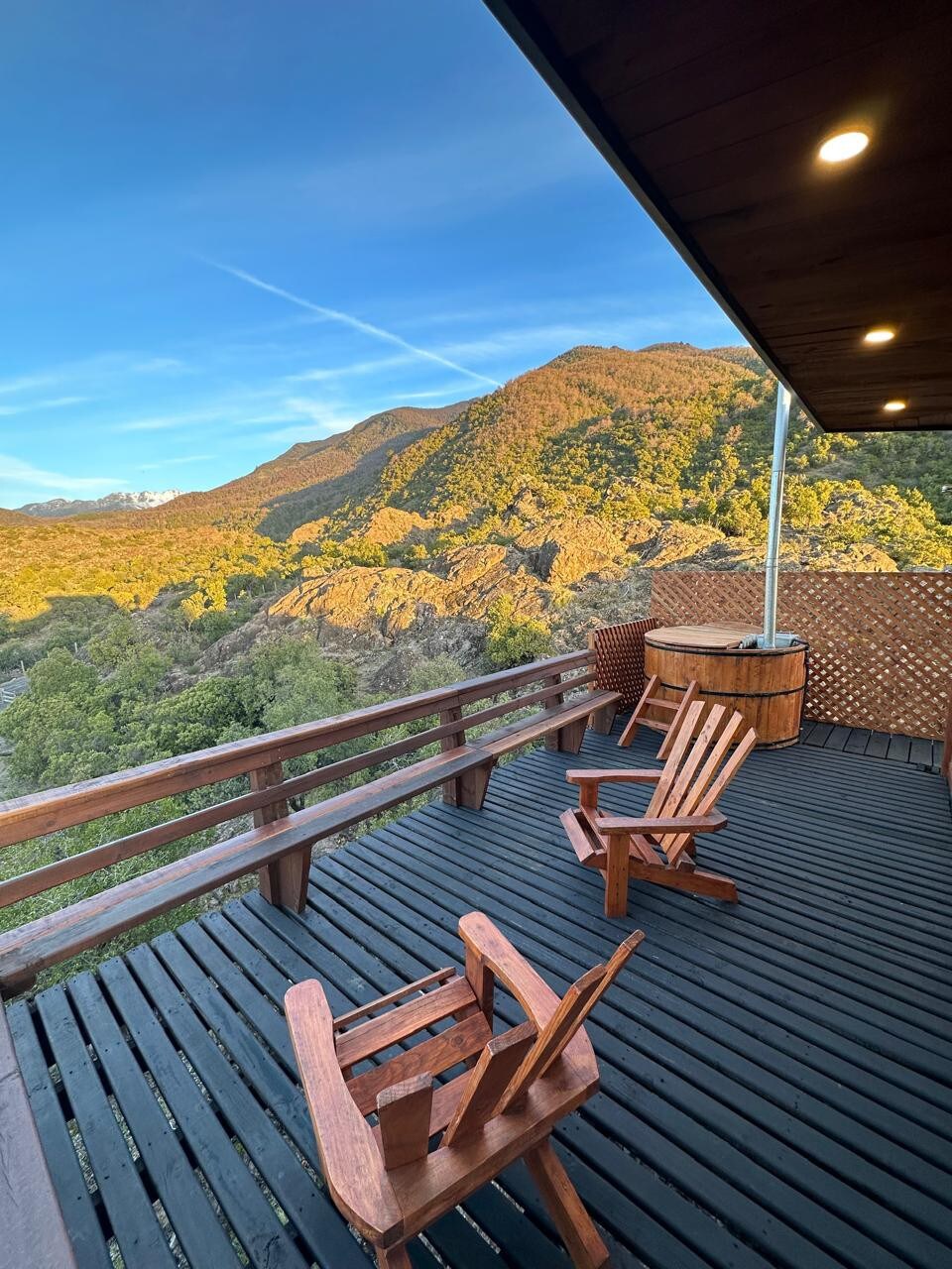 Nuestra cabaña en la naturaleza es un refugio de paz y tranquilidad, rodeado de árboles, ríos y paisajes impresionantes. Nos ubicamos en el km 66.8 camino a ralco, sector aguas blancas; Diseñada para aquellos que buscan escapar del estrés diario y conectar con la naturaleza. Esta cabaña ofrece un ambiente acogedor y relajante. (LA TINAJA TIENE UN COSTO ADICIONAL )