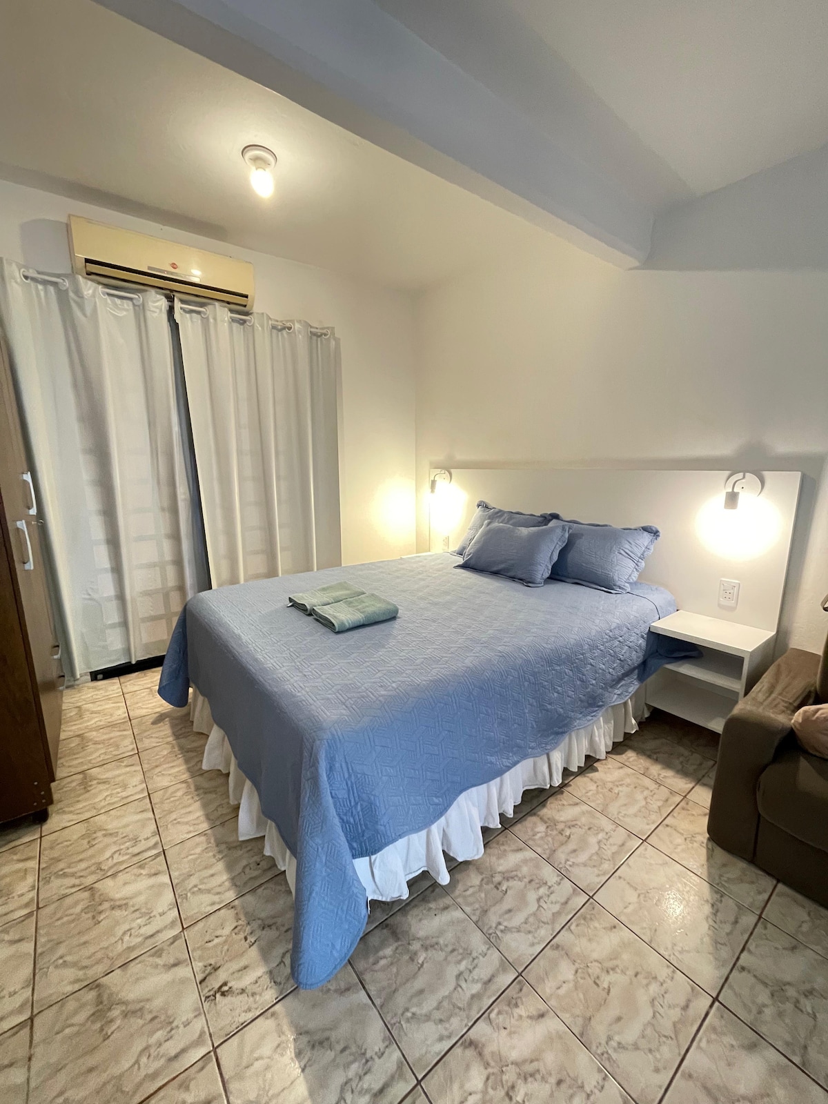 カップルや一人旅の旅行者に最適な快適なキッチン付きワンルーム。エアコン完備のお部屋、クイーンベッド、45インチテレビ、高速Wi-Fi、設備の整ったキッチン、温水付きの専用バスルーム。屋根付き駐車場と洗濯機が無料で利用できます。スーパーマーケット(FortisとBox)、薬局、銀行、レストランに近い絶好のロケーション。中心街まで車で6分以内。 快適で安全な宿泊先で、ご自宅にいるような自由な気分をお楽しみください。お迎えできるのを楽しみにしています!
