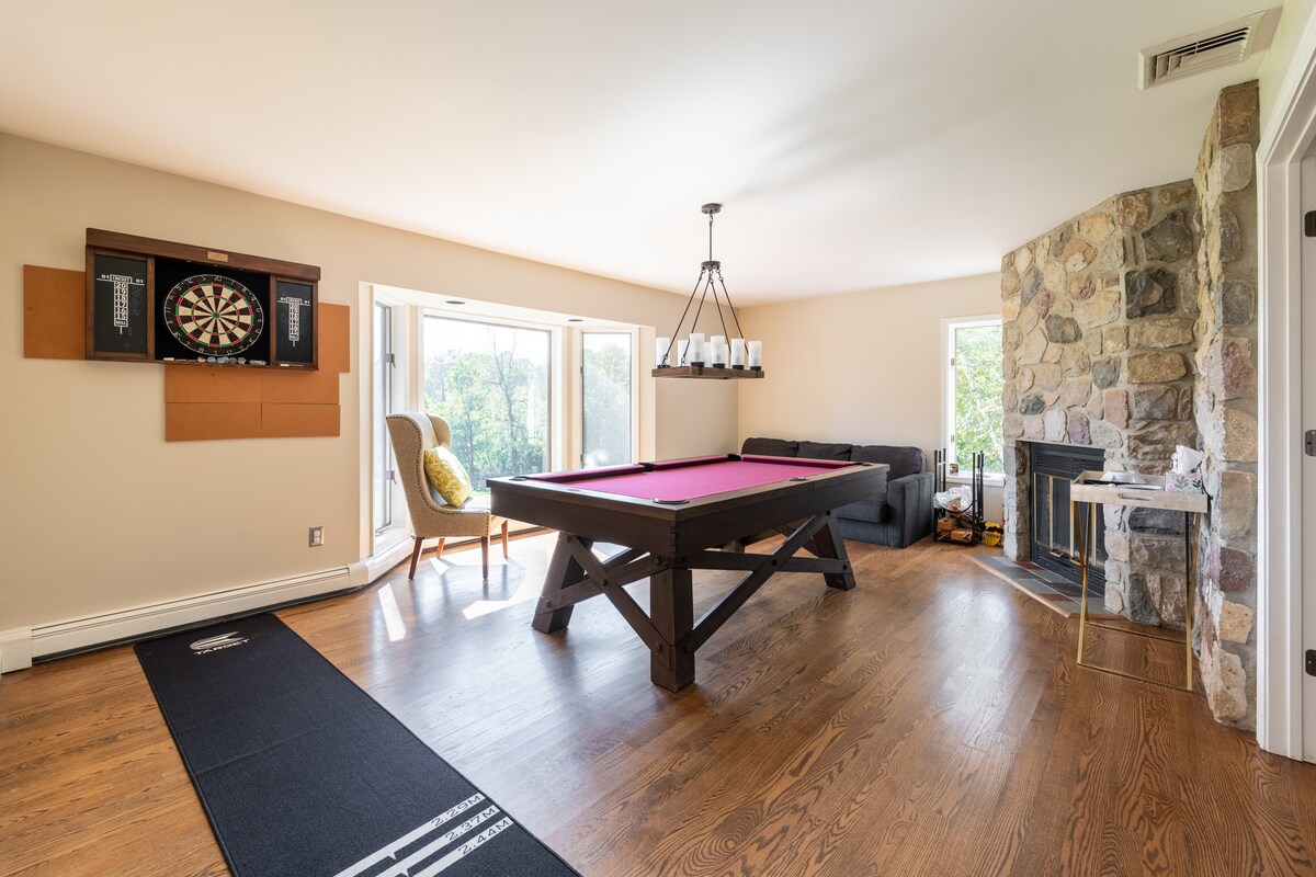 ラグジュアリーAフレーム~サウナ~ホットタブ~映画~ゲーム~60マイル~ニューヨーク