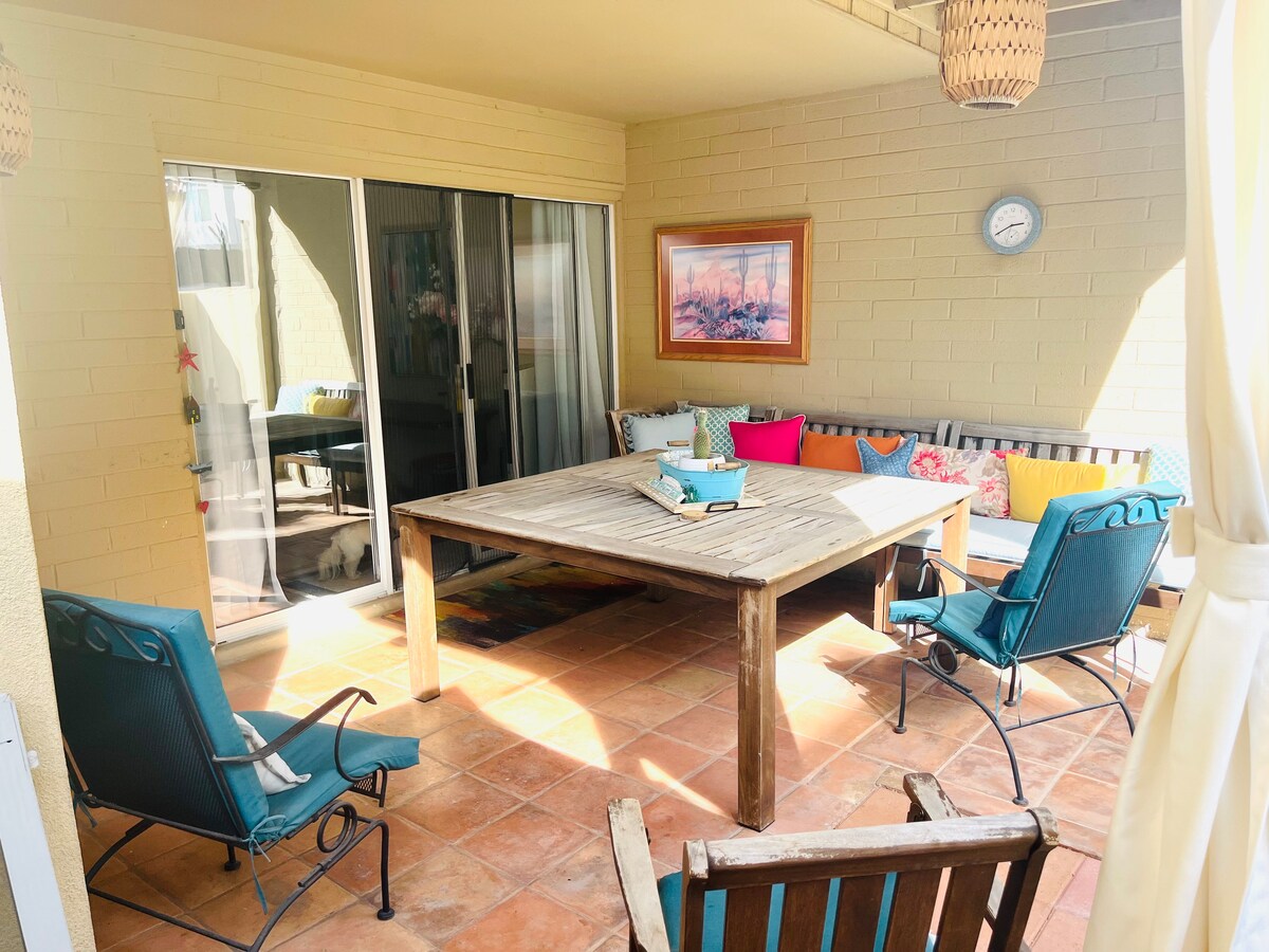 広々としたガーデンビュースタイルのコンドミニアムで、人気の高いフェニックス・ビルトモア・パークエリアの中心部に位置し、素晴らしいロケーションです。ミッドセンチュリーモダンのコンドミニアムは、静かなゲート付きのコミュニティにあり、有名な必見のアリゾナ・ビルトモア・ゴルフコース&リゾートに非常に近く、ビルトモア・パーク・モール、ホールフーズ、トレーダージョーズ、AMCシアター、その他多くの素晴らしいショッピング、ワイン、食事ができる場所まで徒歩圏内です。