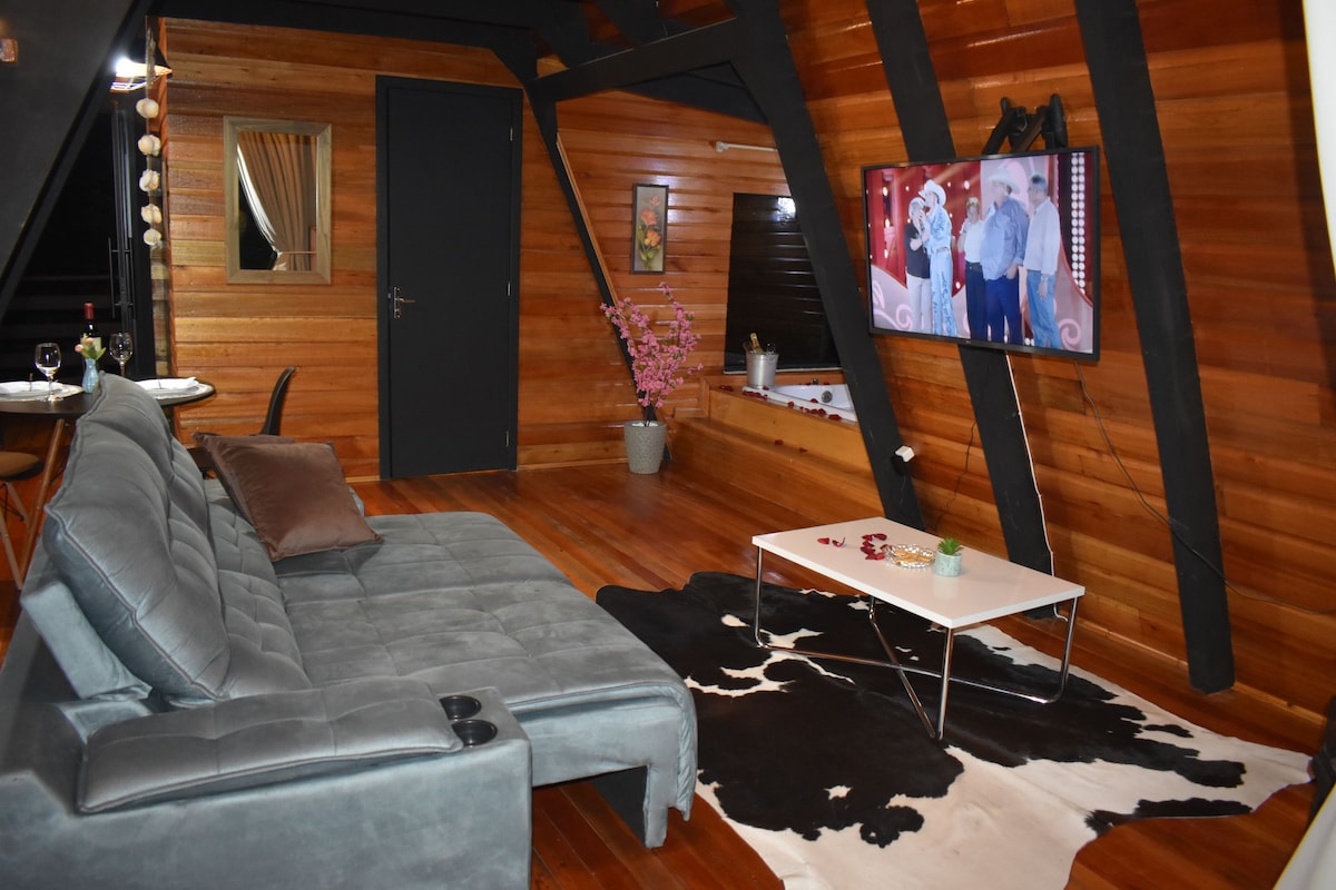 シャレーは、居心地が良く安全でロマンチックな場所で、自然とつながっています。 暖炉、ケーブルテレビ、Wi-Fi、2人用ジャグジー、ミニバー、電子レンジ、オーブン、各種食器を備えたキッチンを備えたお部屋です。 バルコニーとエアコン付きのスーペリアルームです。 タオル、バスローブ、ベッドリネンをご用意しております。 パーソナルケア製品。 朝食用のバスケットが毎日の料金に含まれています。