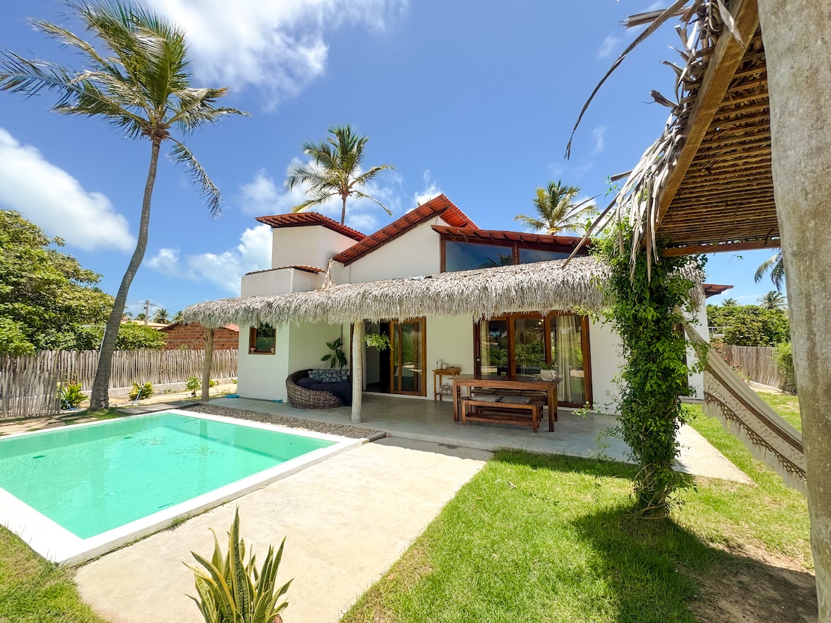 🌿 Relaxe neste lugar íntimo e confortável, onde a água e a natureza convidam à serenidade🌊 . 🍹 Um aperitivo na piscina? Uma pausa sob a cascata? 🍖Ou um churrasco à sombra do grande cajueiro entre amigos? Ao voltar da praia ou de um passeio, aproveite uma ducha quente ao ar livre em um dos banheiros-jardim privativos. Ou reúna-se com amigos no salão aconchegante para compartilhar descobertas, ao som suave da cascata do espelho d’água ⛲. 🏖️ praia/comércios 700m 🛒 supermercado 1 min a pé