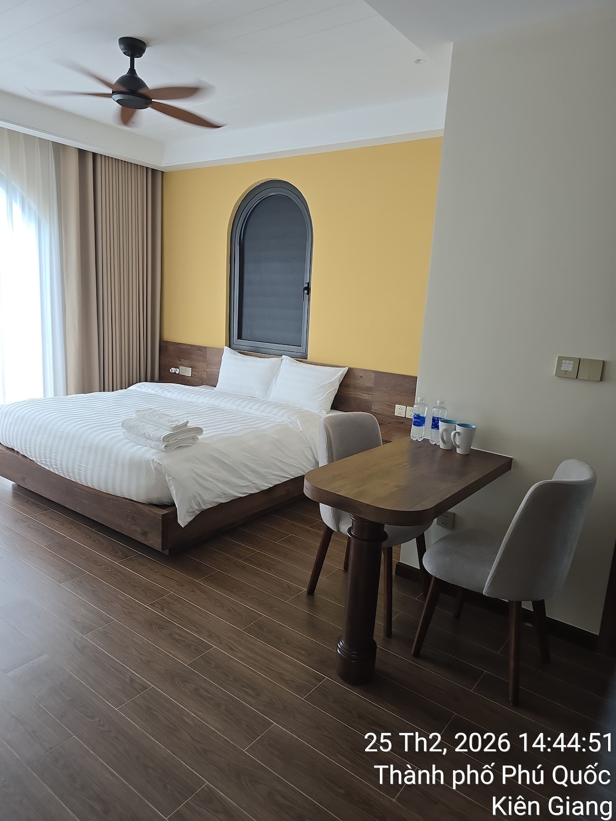 Our ocean-view studio is one of two private rooms in a dual-key apartment sharing a main entrance. No internal connecting door, fully independent smart lock. Located in Hillside – Sunset Town, Phú Quốc, offering panoramic sea views, iconic sunsets, and a perfect balcony angle to watch nightly fireworks, especially during peak season and festivals. Crafted for guests who appreciate aesthetic spaces, comfort, and extraordinary travel moments.