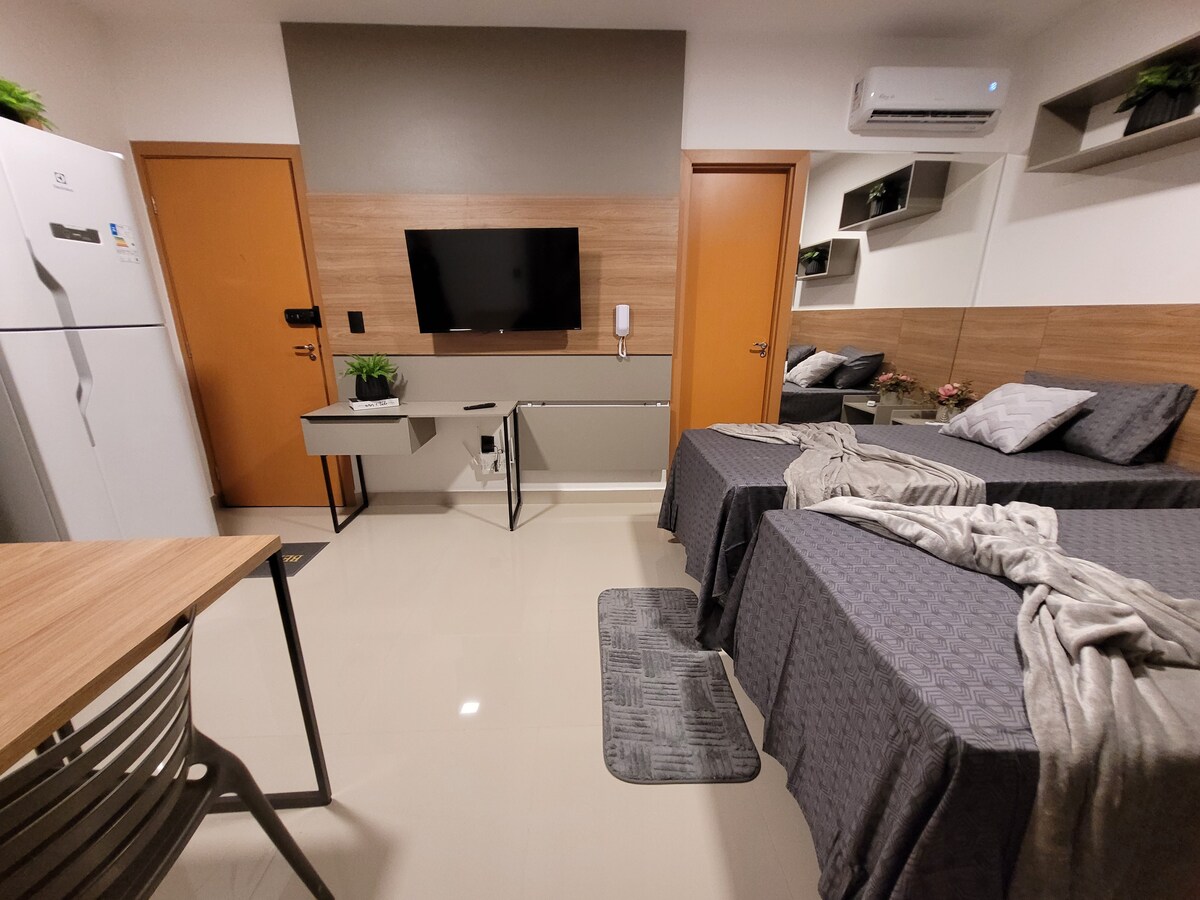 アナポリス大学地区ヴィトリア住宅地のモダンなアパートメント。最大4名様までご宿泊いただけます。Wi-Fi、エアコン、スマートテレビ、フルキッチン、ベッドリネン/バスタオル、洗濯機、乾燥機、モダンなインテリアが備わっています。コンドミニアムには専用ガレージ付き駐車場、エレベーター、大学通りへのアクセスが簡単です。大学通りへのアクセスが良好で、近くには商店、病院、大学があります。家族連れ、ビジネスマン、学生、観光客に最適です。 すべてが、あなたの滞在を軽やかで実用的、そして楽しいものにするように考えられています。