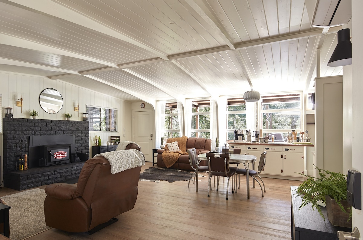 **Recently refreshed/re-furnished!** This house was named 'The Ranch House' by its architect Don Jacobs, this updated 70s cabin is a forest getaway with modern sensibility. The house is surrounded by redwoods & has 2 large decks, 1 w/ propane firepit w/ ample seating, the other w/ hot tub. Living room has picture windows w/ forest views & Morso wood-burning stove. Guests are encouraged to enjoy the hiking trails, pools, and outdoor amenities. House comfortably sleeps 4, plus fiber-optic internet