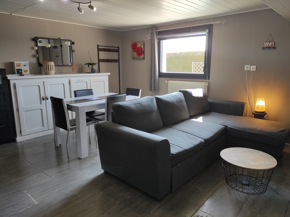 こんにちは、 私たち夫婦は、リヨンの山々に囲まれた私たちの住宅の中心部に隣接する1階のアパートにあなたをお迎えできることを楽しみにしています。 45平方メートルの快適なアパートで、バスルームとトイレ、 キッチン、リビング、ベッド(140)が一室に 完全に独立しています。玄関の前に車を駐車することができます。美しい景色と静かな環境が保証されます。 私たちは田舎に住んでおり、時々オンドリの鳴き声や犬の鳴き声が聞こえてきます。