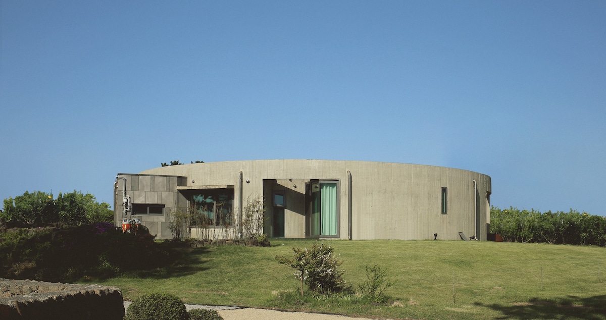 *予約前に必ずご確認ください - 基本利用人数:1 ~ 5名様→本館のみご利用可能(寝室2室+浴室2室) - 6名様以上のご予約の場合、→別棟(バスルーム付き)を追加でご利用いただけます。 - 別棟をご利用の場合は、6名様以上でご予約ください。 ※ スムーズな運営のため、基準人数を必ずお守りください。 「自然と一体」を建築のモチーフに、型にはまらないように円形に設計しました。そして、座って見る世界のゆとりを感じるために、ほとんどの空間を座席で飾りました。 ラソンは家族が住むために設計プロセスから参加して 心を込めて建てられた家です。ここ数年、済州の自然だけを感じることができた時間でした。 今度は、済州が与える快適さと美しさを共有したいと思います。 ゆったりとお過ごしください。 {ラソン}