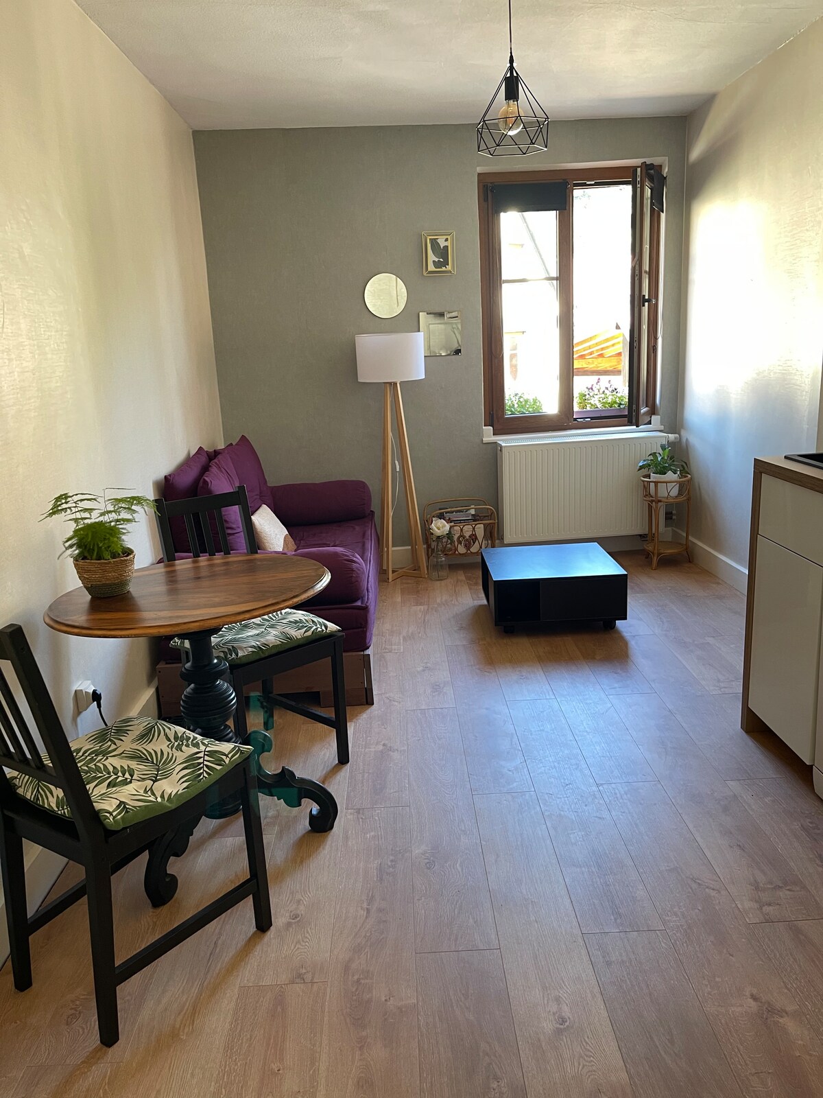 Totalement rénové, classé 3*, il est situé dans un écrin de verdure sur la route des vins à Barr, (capitale des vins ). Il est entièrement équipé, grande baie vitrée avec vue sur la forêt où vivent nos 4 adorables chèvres que vous pourrez aller voir. Ambiance très cocoon, son grand jardin borde une rivière . Le logement se trouve au 1er étage de notre habitation et comporte une entrée privative avec accès par le jardin. Proche de Strasbourg à 30mns, Colmar à 40 mns, europapark à 1 h