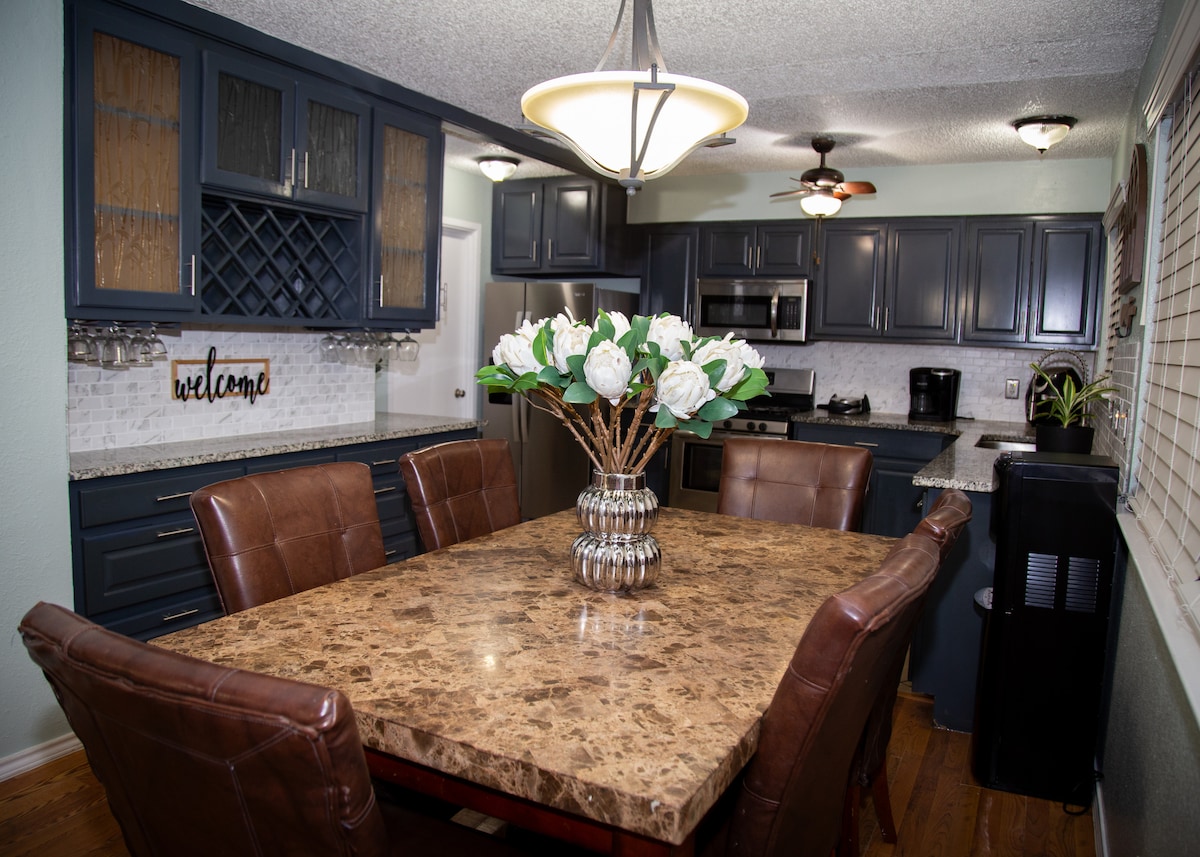 静かな袋小路にある、モダンでスタイリッシュなミッドランドの家に滞在しましょう。オープンコンセプトのリビングエリア、設備の整ったキッチン、広々とした寝室、デュアルモニター設定の機能的なオフィス、大きなトレーラーパーキング、芝生のある専用のフェンス付き裏庭をお楽しみください。ご家族連れや出張者、長期滞在に最適です。清潔で快適、そしてリラックスできるように設計されたこの家は、町のあらゆる場所に近い理想的な西テキサスの隠れ家です。