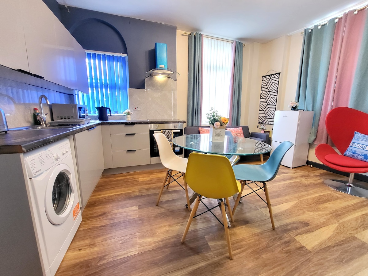 🏠 リバプールの新しく改装された2寝室のフラット 😊 Netflixテレビ 超高速Wi-Fi ・洗濯機 🆓 無料駐車場 エバートン・スタジアムまで徒歩5分 リバプーラ・ファンクリック・スタジアムまで車で4分 市内中心部まで車で9分 シャワーとバスタブ付きの広々としたバスルーム 設備・器具のそろったキッチン 市内中心部からわずか10分の場所にあり、高額な駐車料金がかからないので、このアパートはリヴァプールでの滞在に最適です。 😊