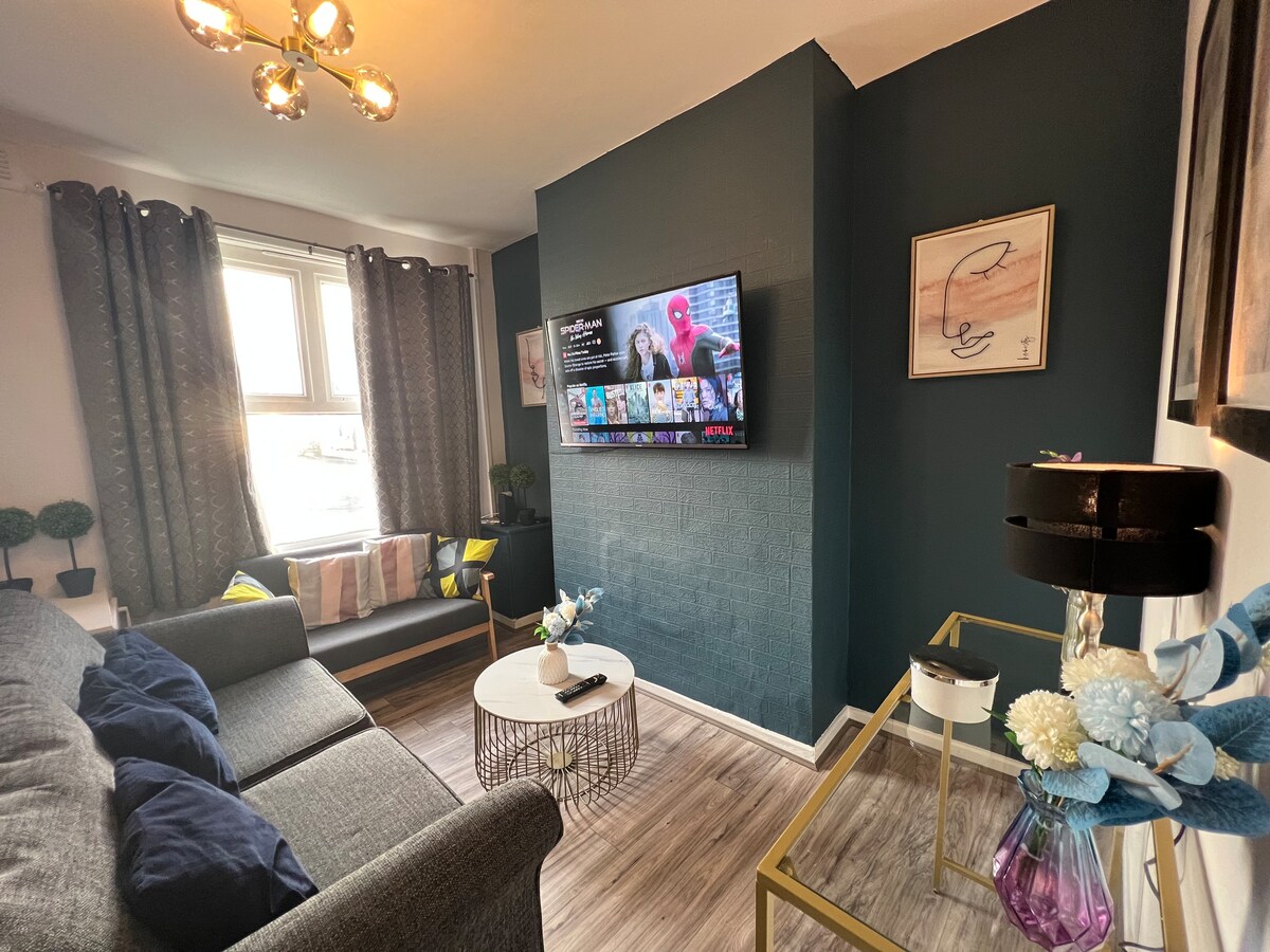 - 全面タイル張りの真新しいバスルーム - アンフィールドスタジアムまで徒歩3分 - 市内中心部までタクシーで6分 柔軟なチェックイン/チェックアウトが可能です。 -超高速Wi-Fi (100 MB以上) Netflix/Prime付きスマートテレビ - 高級寝具とタオル - とても清潔です 設備の充実したキッチン ・洗濯機 - 家の外に無料の路上駐車場があります(試合当日は制限が適用されます。近くに別の駐車場があります) - お茶、コーヒー、砂糖、牛乳 パーティー厳禁 特定のグループの場合は損害賠償金がかかり、チェックアウト日に返金されます