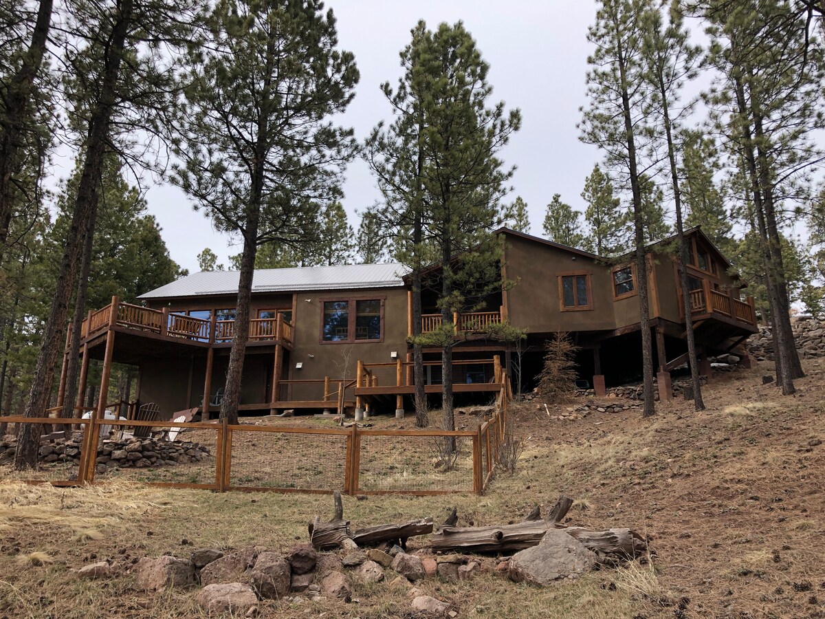 エンジェルファイアの休暇に最適なロケーションで、エルカミーノ・レアル・ロッジはスキー/バイクトレイルへのアクセスから数歩で、トレイルアクセスのあるオエスタ・ビスタ・グリーンベルトに隣接しています。 この美しいロッジは17名様が快適に宿泊でき、4つのベッドルーム、3つのフルバス、7人用の新しいジャグジー、ファイヤーピット、3つの高層デッキ、5つのスマートテレビ、そして子供たちが大好きなボーナスロフト(ツインベッド4台)を備えています。 稀に見るフェンス付きの裏庭と、段差のない簡単なアクセスのランプエントリーがあり、誰もが滞在を楽しむことができます。