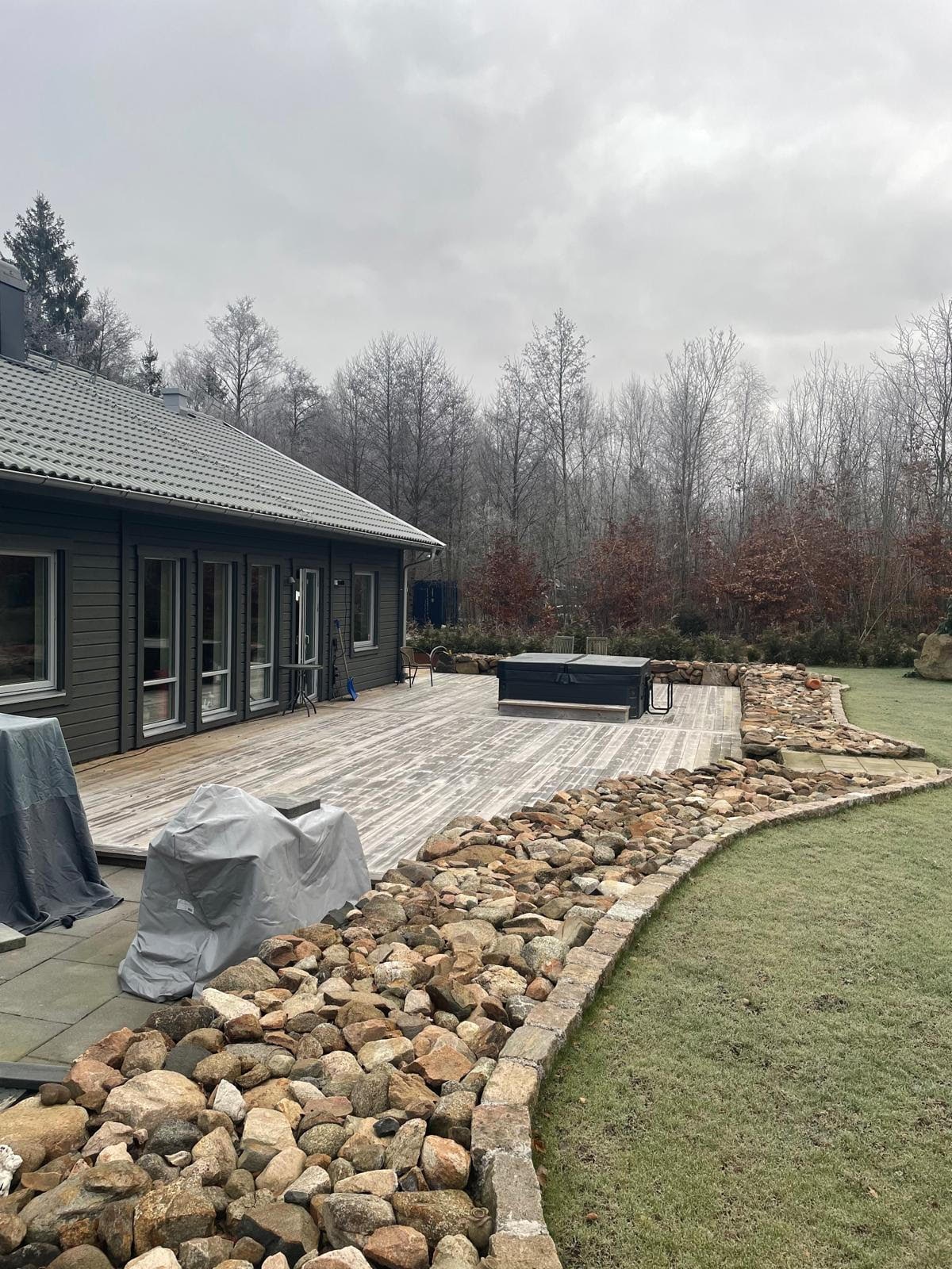 明るくて居心地の良い家へようこそ。オープンキッチンとリビングルームが、心地よい時間を過ごすのに理想的です。リビングルーム、バスルーム、ベッドルームから大きなテラスに直接アクセスできます。外には家具付きのテラス、薪で温めるホットタブと遊べる大きな庭があります。家には、2つの寝室とフレキシブルなベッドを備えたロフト、そしてバスルームと洗面所があります。別館には、追加の3つのベッドと専用のバスルームがあります。一年中完璧です!