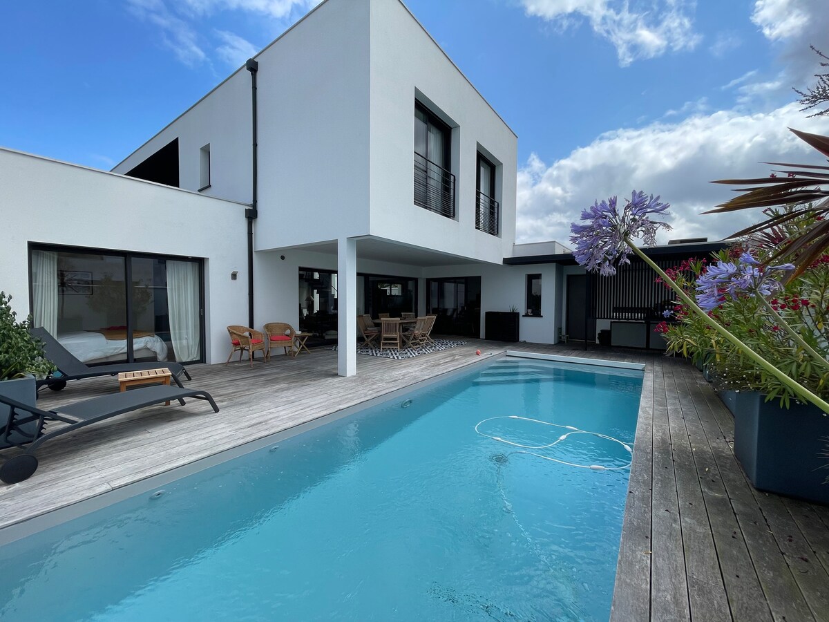 ビアリッツの新しい建築家の5つ星ヴィラ、プール、スパ