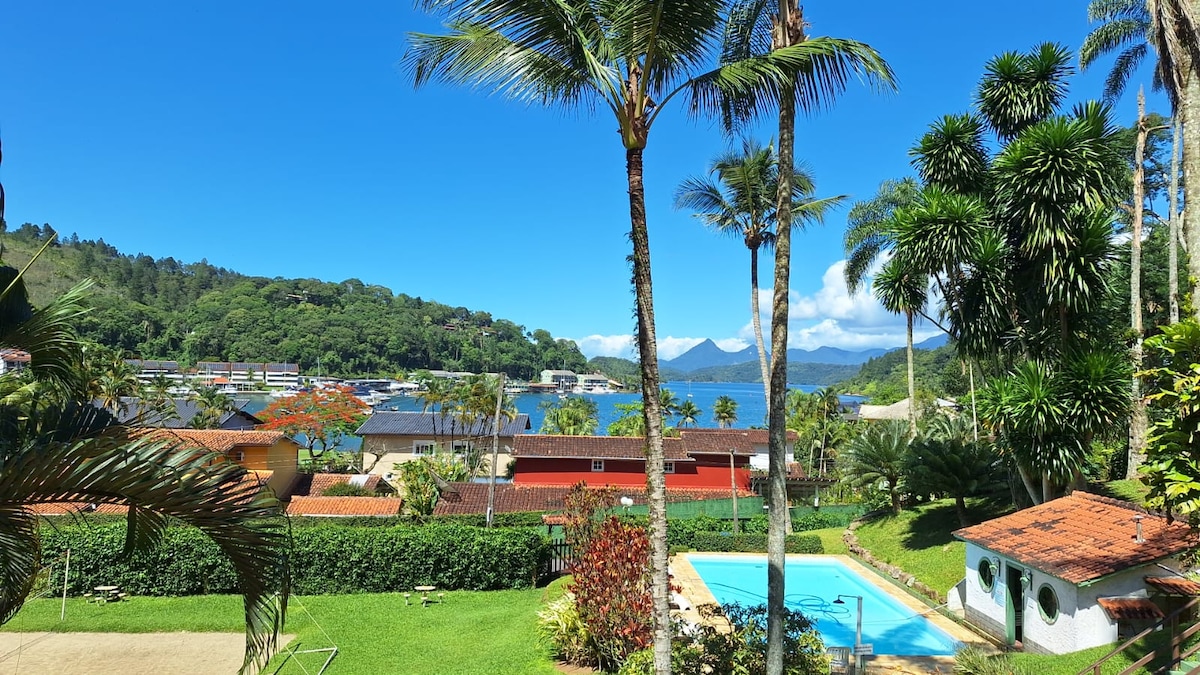 We invite you to enjoy some unforgettable days in this beautiful island chalet on Ilha Grande. Where you can feel the privacy of your own home surrounded by the purest vegetation of the Atlantic forest and with a dazzling view of the sea. The house is located on the edge of Abraãozinho beach, a 5-minute walk from the BONITO PARAISO inn. Includes services at the inn such as breakfast, afternoon tea, tourist advice and free use of kayak and stand-up boards.