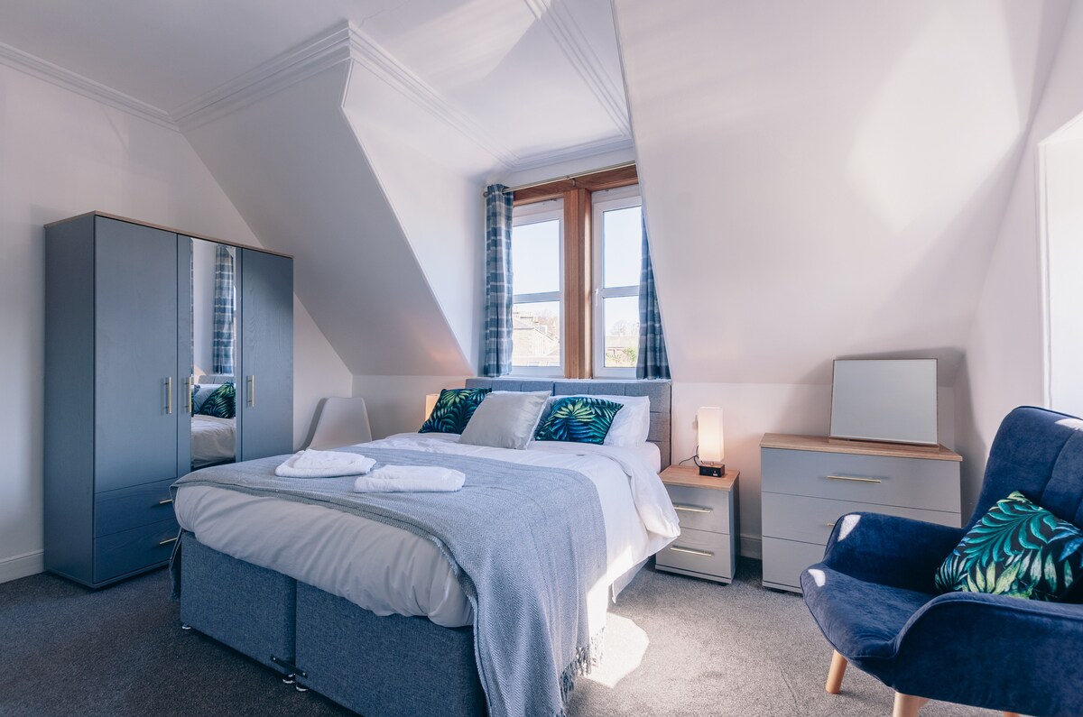 ブレアゴーリーの町の中心部から徒歩わずか5分の、快適で居心地の良い1ベッドルームの家でリラックスしてください。スコットランドをテーマにした繊細な雰囲気の家は、スーパーキングサイズのベッドで素晴らしい睡眠を求めるカップルや一人旅の旅行者向けに設計されており、落ち着いた居心地の良い空間で、パースシャーを探索するのに理想的な拠点です。よくお行儀の良い犬を連れて旅行するゲストも歓迎します。無料駐車場もあります。 家族を訪問したり、休息を取ったり、丘を探索したりする場合、この家は思い出に残る静かな滞在を提供します