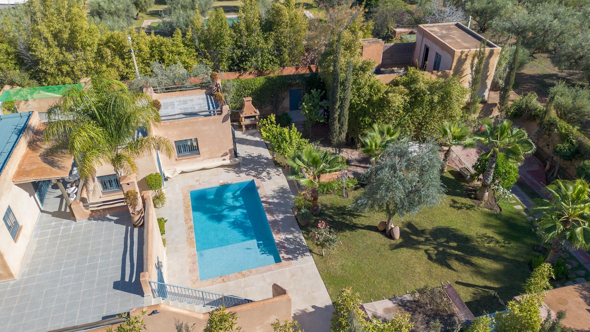 このシックな宿泊施設で家族みんなで楽しんでください。 24時間セキュリティが確保された高級住宅(アケンザリゾート)の中心に位置する広々としたモダンなヴィラで、プライベートプールと美しい中庭があり、テラスを十分に楽しむことができます。 最近改装され、高級住宅のデザインに完全に調和したモダンでロマンチックなスタイルで丁寧に装飾されています。 マラケシュの太陽を楽しむのに理想的な宿泊施設です。