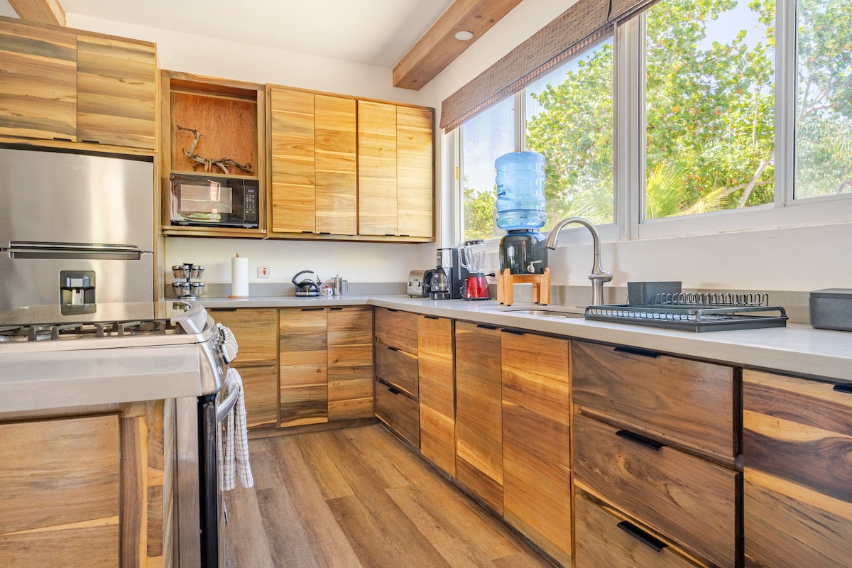 アーティストコテージは、生い茂る熱帯植物の庭に建つ、魅力と個性にあふれたカラフルな木造の小屋です。 屋内には、ベッド2台を備えた居心地の良い寝室があり、そこからバスルームエリアと美しい屋外シャワーにつながります。ベランダにはくつろげるダイニングスペースがあり、設備の整ったキッチンをご利用いただけます。 海辺のプラットフォームで海沿いの日の出を見ながら1日を始め、ホタルと心地よい波の音に囲まれて星空の下で1日を終えましょう。 自然の中にある、穏やかで心に響く隠れ家です。