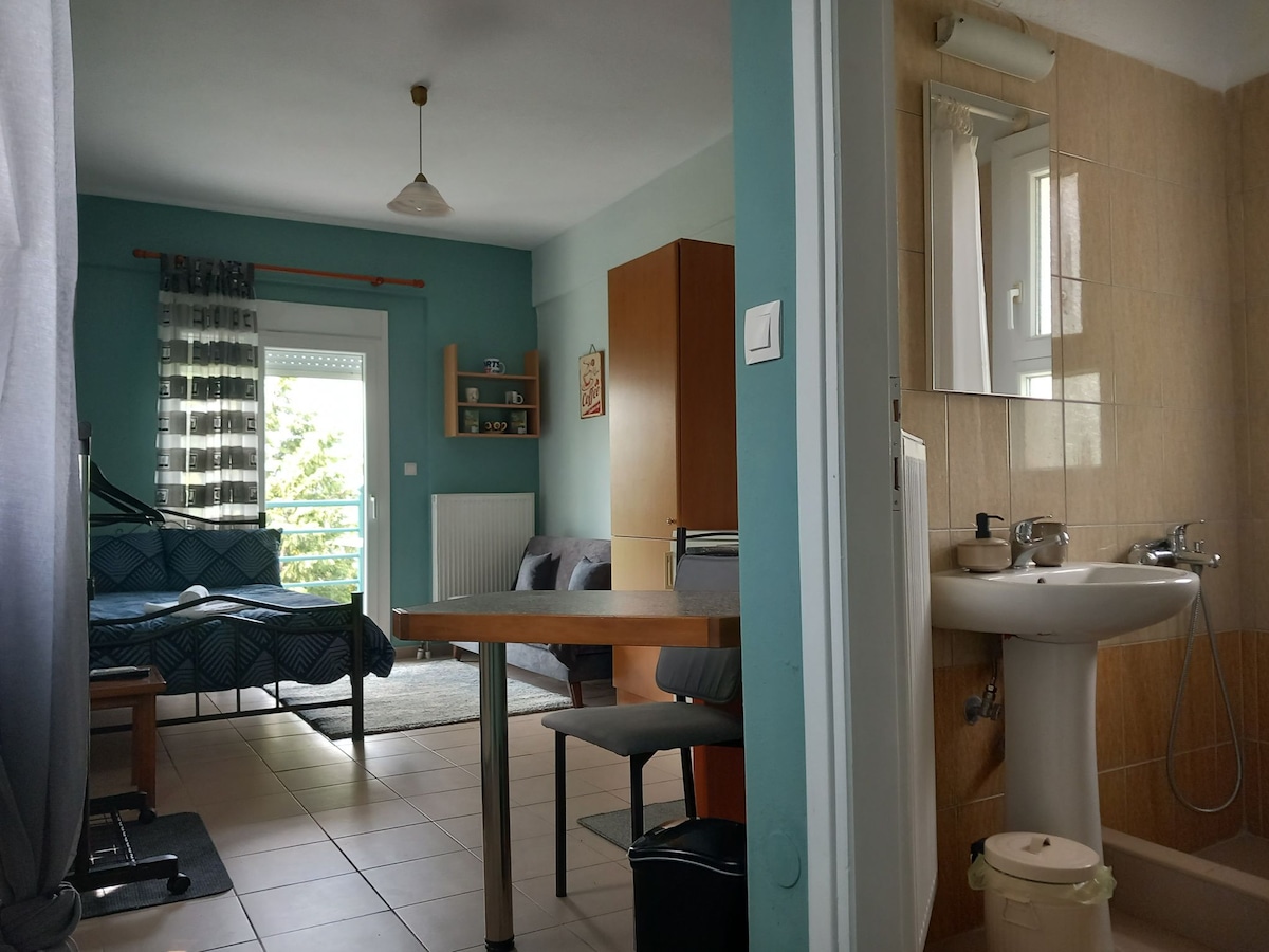 Αγαπητοί φίλοι, σας καλωσορίζω στο ολοκαίνουργιο στούντιο που δημιούργησα πριν λίγες μέρες και ελπίζω ο χώρος μου να ανταποκρίνεται στις απαιτήσεις σας. Ένα όμορφο, ζεστό και πλήρως εξοπλισμένο στούντιο είναι έτοιμο για εσάς. Σε μια ήσυχη γειτονιά, στην περιοχή Ηπειρώτικα, 5 λεπτά με τα πόδια από το κέντρο της πόλης. Στα 100 μέτρα θα βρείτε τον περίφημο φούρνο «Σιδέρης» καθώς και ένα σούπερ μάρκετ. Η στάση του λεωφορείου απέχει μόλις 200 μέτρα. Υπάρχουν πολλές θέσεις στάθμευσης στη γειτονιά.