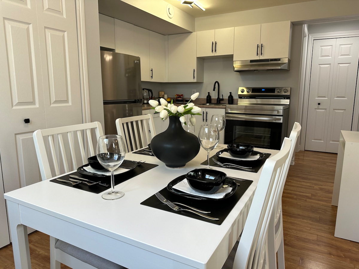 Lovely three bedroom apartment above Gabrieau's Bistro on the Main St. The apartment is two stories, with your kitchen, dining room, living room and balcony on the first floor and the bathroom w/laundry and three bedrooms upstairs. Fully furnished for your convenience and if something is missing we will get it for you. The kitchen is stocked with all the necessities and the building is in an ideal location for getting around town.