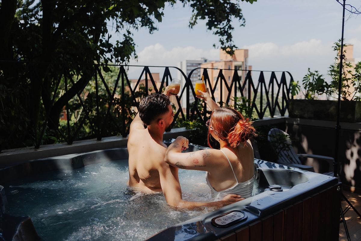 A private romantic hideaway in the mountains — just 8 minutes from Medellín’s international airport. Soak in your outdoor jacuzzi filled with heated natural spring water, overlooking an open valley and unforgettable sunsets. A cozy tiny house designed for privacy, calm, and connection — surrounded by native Colombian forest.