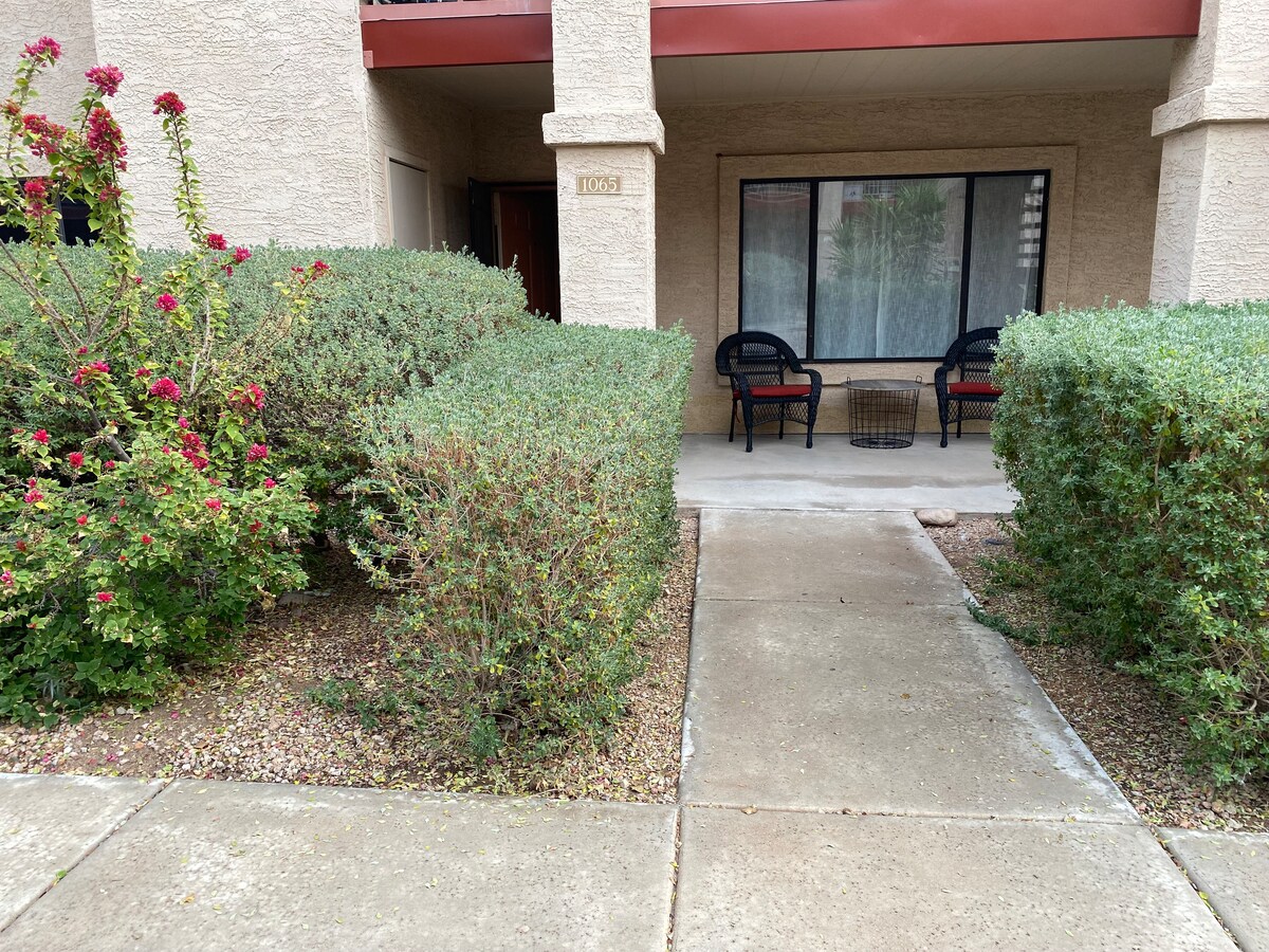 パティオから美しい山と街の景色をお楽しみください! 専用玄関を備えたこの1400平方フィートの改装済みゲストハウスには、2部屋、1ベッドルーム、ランドリールーム、キッチン、オープンフロアの広いリビングルームがあります。 パティオは2つあります。1つはスーパースティションズの素晴らしい景色を眺めることができ、もう1つは街を見渡すことができます。 アクティブなアウトドアアドベンチャー、目的地、または単に美しい景色を楽しむ静かな場所をお探しなら、これ以上探す必要はありません。