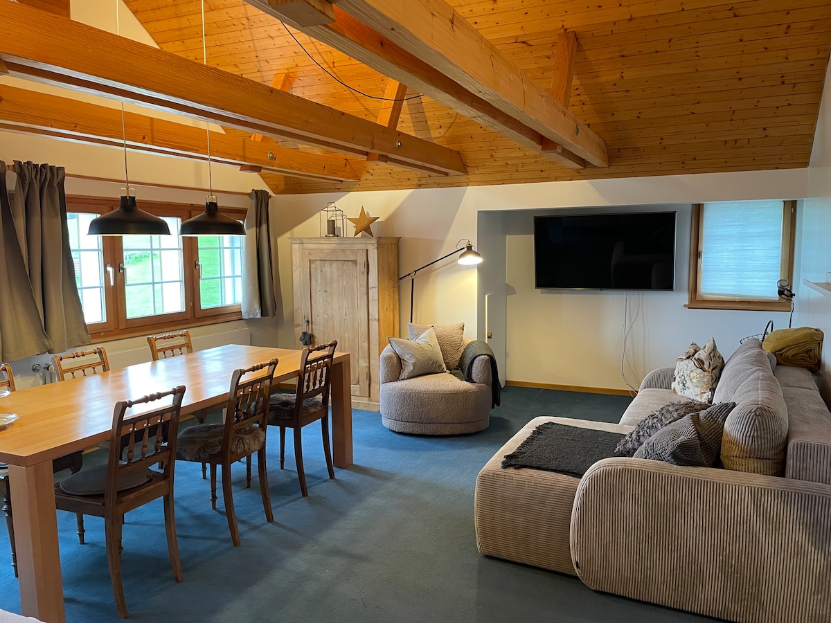 アルプスタイン、丘陵、そして田舎の息をのむような景色は、ハイキング、スポーツ、散歩にも最適です。スノーシュー、クロスカントリー、そりなどのウィンタースポーツ休暇にも最適です。 私たちの家では、日常生活から逃れ、田舎の生活を味わうことができます。また、別荘からそう遠くない場所にある私たちの農場を見学することもできます。牛から直接搾りたての新鮮な牛乳や鶏からの新鮮な卵をお求めいただけます。