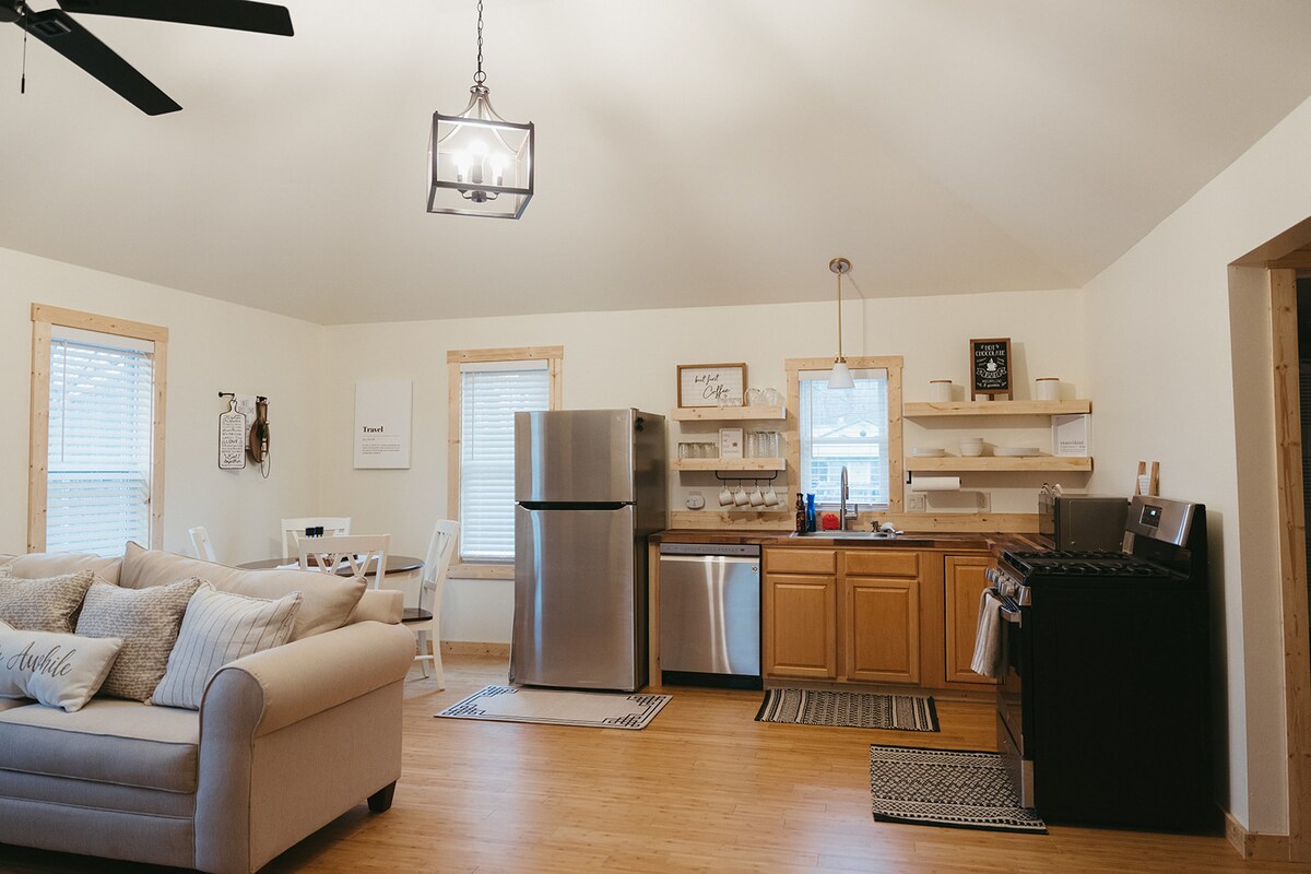 You're not staying at grandma's cottage here! Our neat and tidy cottage is full of updates & space for your whole family, friends and pets. 2 private bedrooms & space to pack in the kiddos up in the loft. We're just a brief walk away from 1 of 8 private lake accesses you're welcome to use! Our outdoor space is perfectly set up for vacation and has a BRAND NEW HOT TUB! Enjoy your coffee on the front deck, grill on the back patio & sit around the bon fire after dark in the privacy fenced yard.